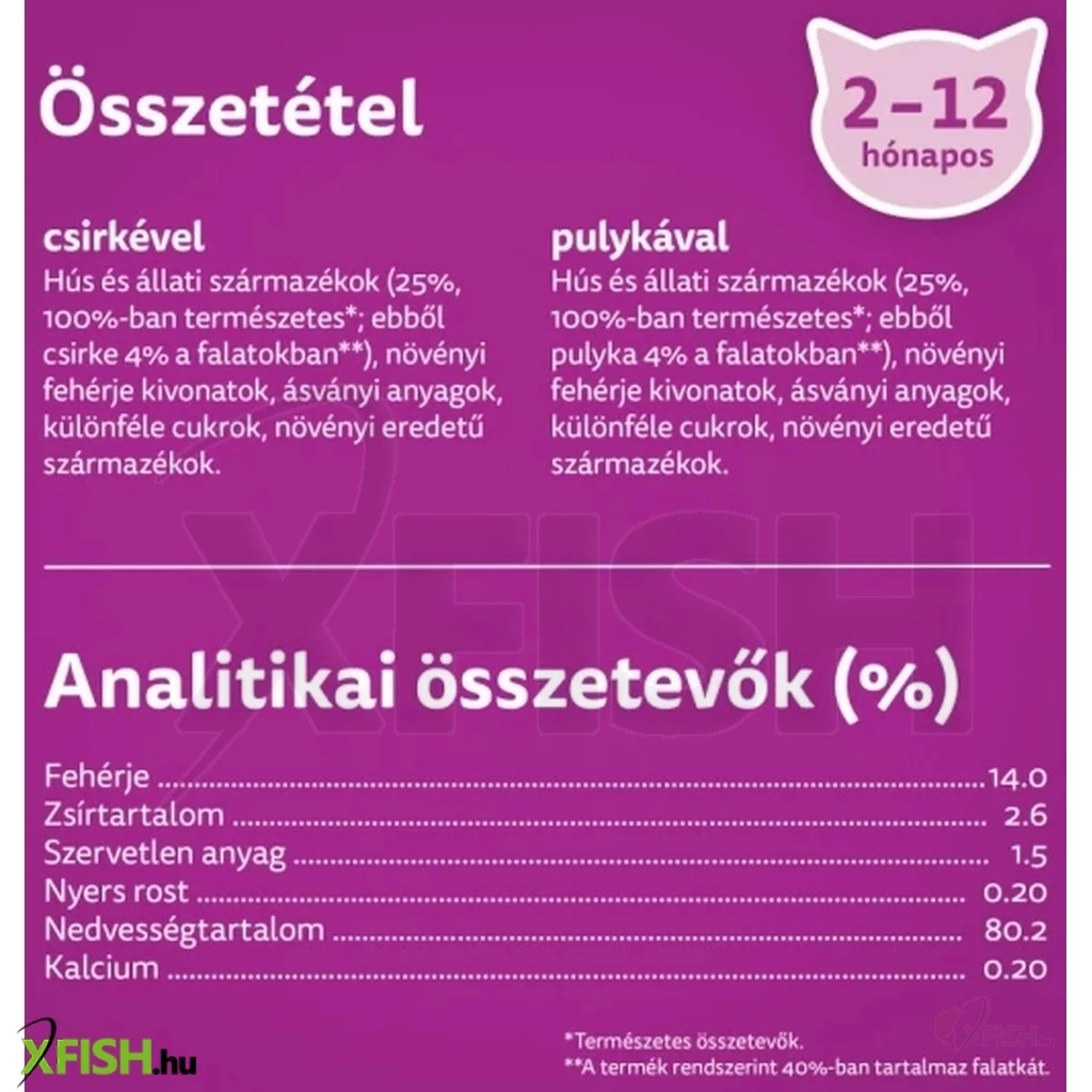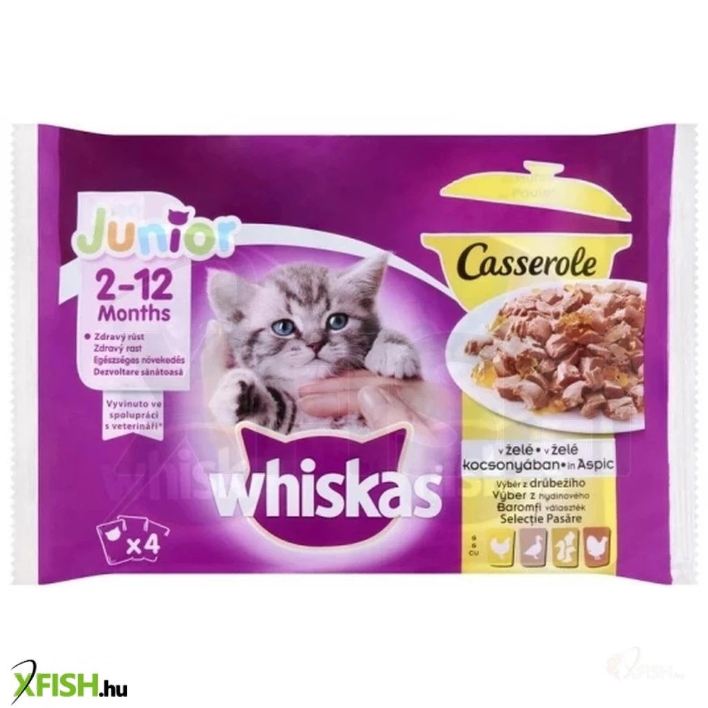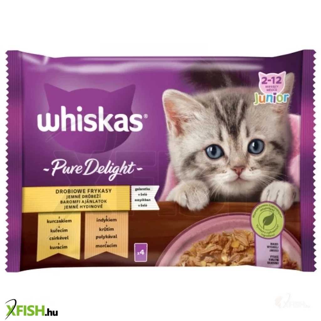 Whiskas alutasak 4-pack pure delight baromfi aszpikban junior 4x85g multipack, 13 db/csomag