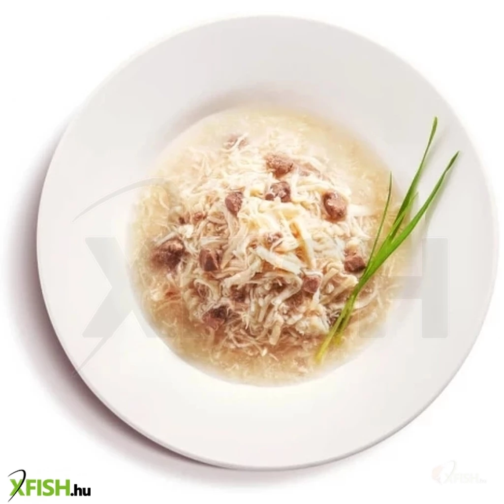Összetevők: Víz, csirke 39%, csirkemáj 3,6%, Táplálkozási adalékanyag módosított tápióka keményítő.