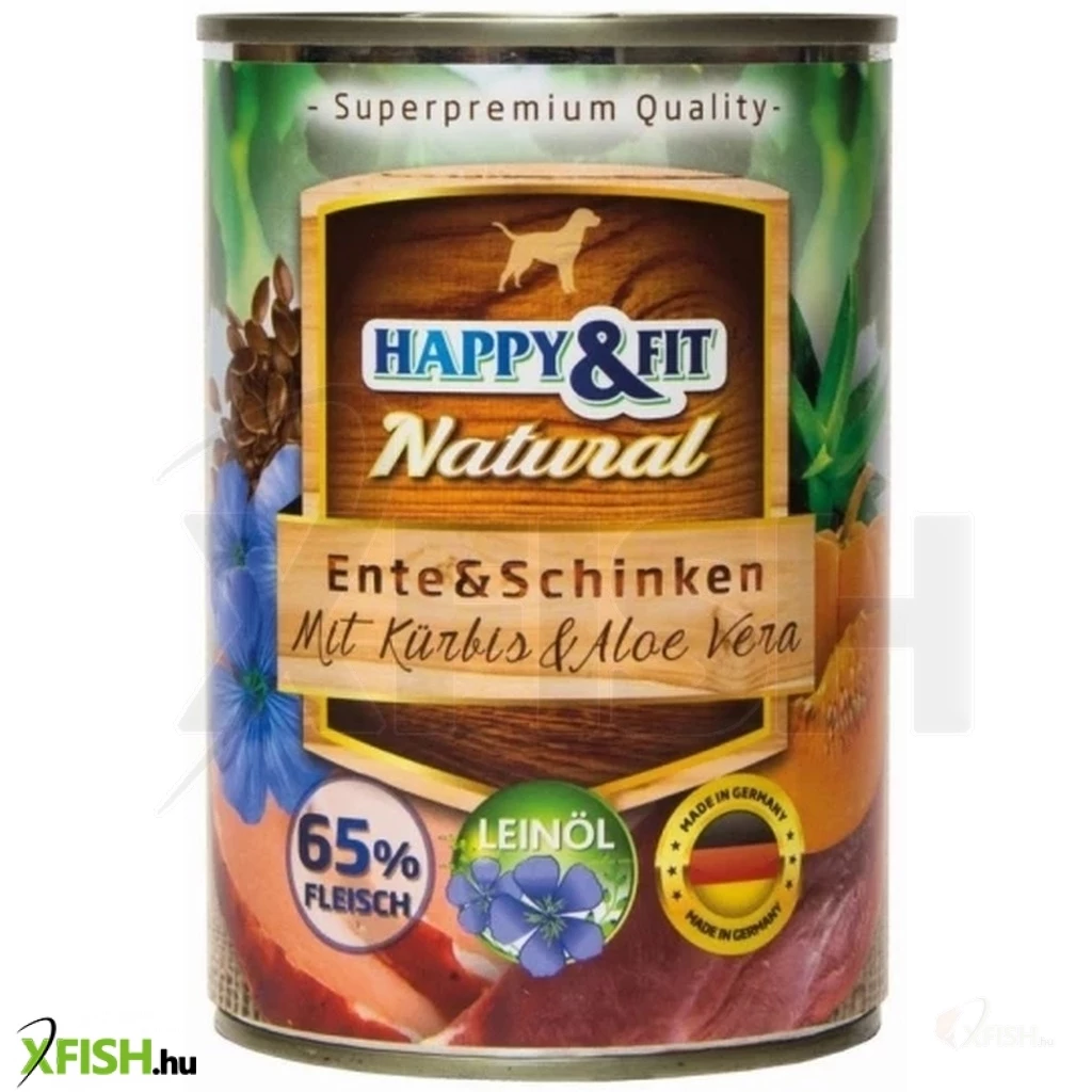 Happy&fit natural dog konzerv kacsa & sonka sütőtökkel & aloe verával 400g, 6 db/csomag