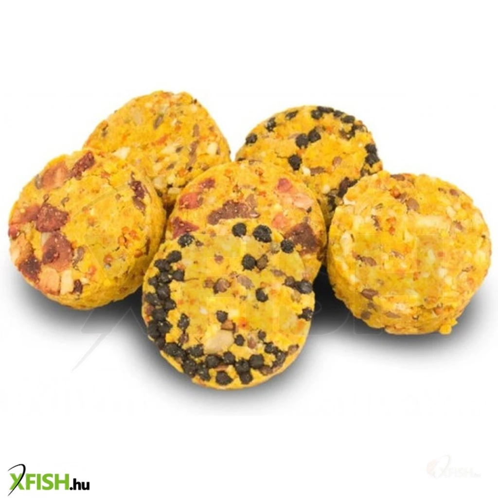 Összetevők: kukorica, búza, sárgarépa 12,2%, lenmag 10,3%, La Plata köles, földimogyoró, manna köles, napraforgómag, repceolaj, borsókeményítő, banán 0,7%, áfonya 0,7%, eper 0,7%.
