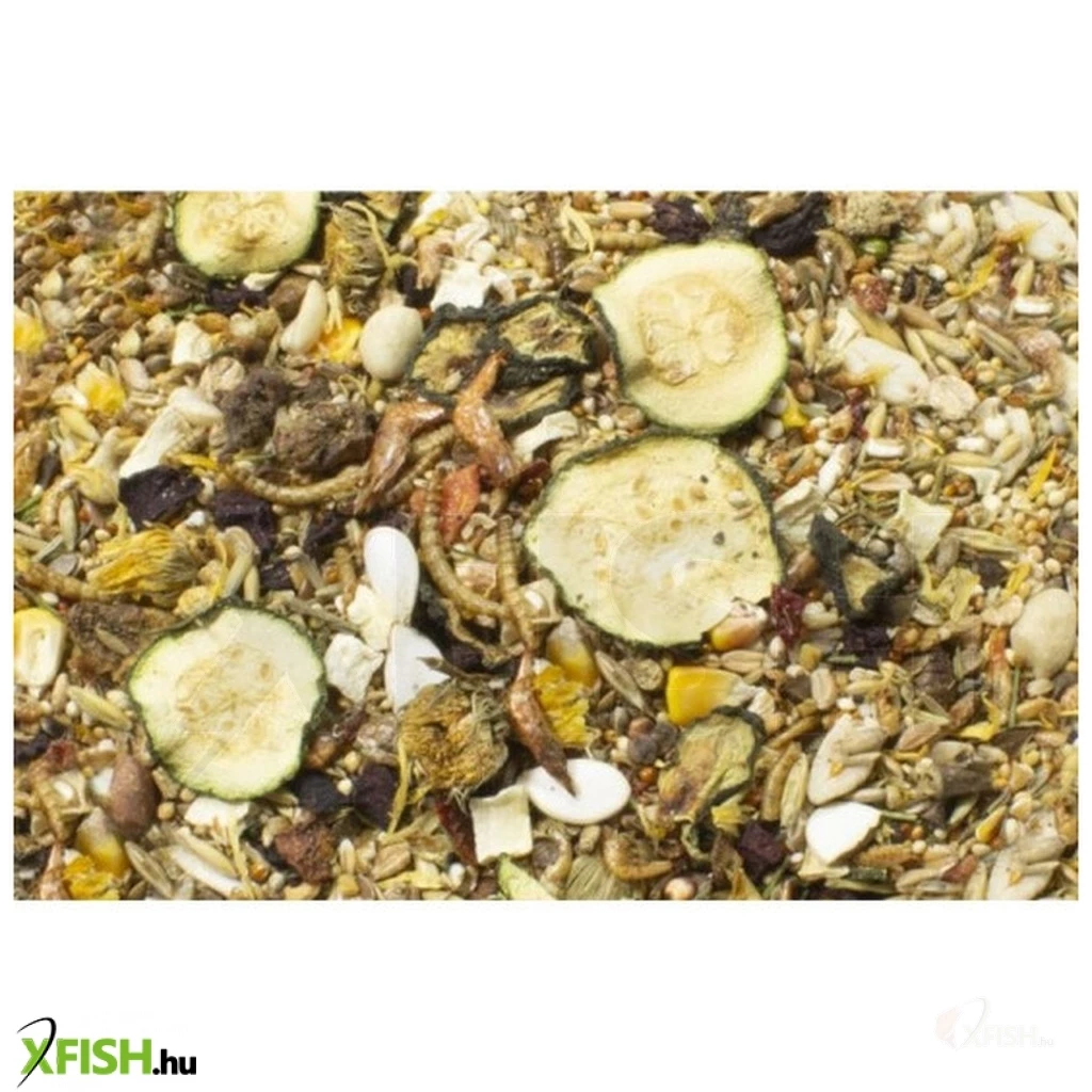 Összetétel: ezüst köles, La Plata köles, zab, manna köles, kukorica, búza, földimogyoró, búzapehely, rizs, kanári fűmag, garnélarák 2,9%, paszternák 2,8%, búza puffasztott, vörös mohair köles, hajdina, graminaceous mag, szenegáli köles, vadon termő magvak, sárgarépa, cékla 2%, lenmag 1,7%, tönkölybúza, cirok bicolor, selyemhernyó gubók 1,6%, gammarus 1%, étkezési férgek 1%, görögszéna mag, hámozott szezámmag, amarant, kék mák, körömvirág virág 1%, petrezselyem, mung bab, milo, kendermag, áldott máriatövis mag, hámozott tökmag, paradicsom, paprika, cukkini, uborka, kakaslábmag, timothy fűmag, lucernamag, kapormag, édesköménymag, csipkebogyómag, fekete köménymag, yucca 0,2%.