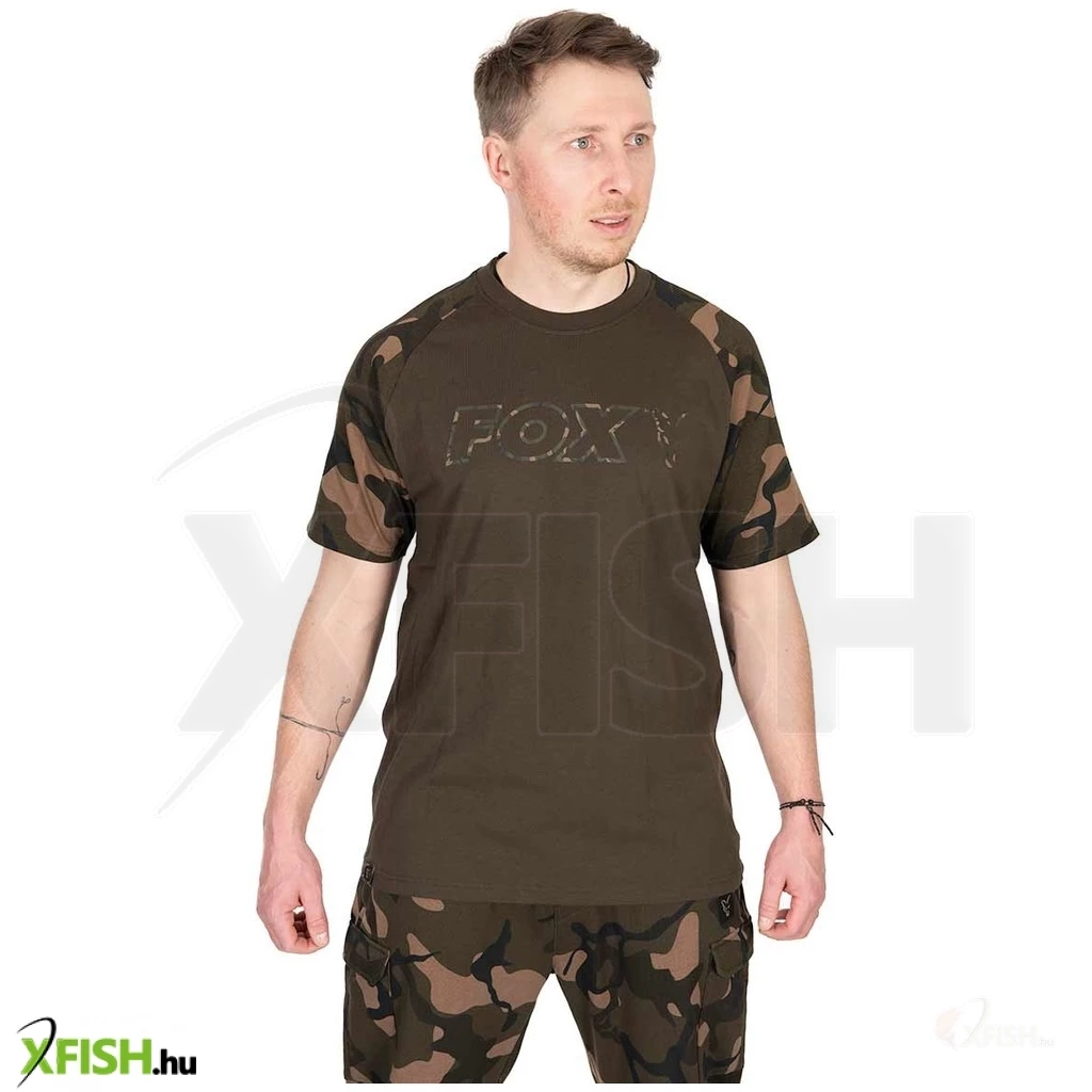 Khaki póló Fox camo raglán ujjakkal