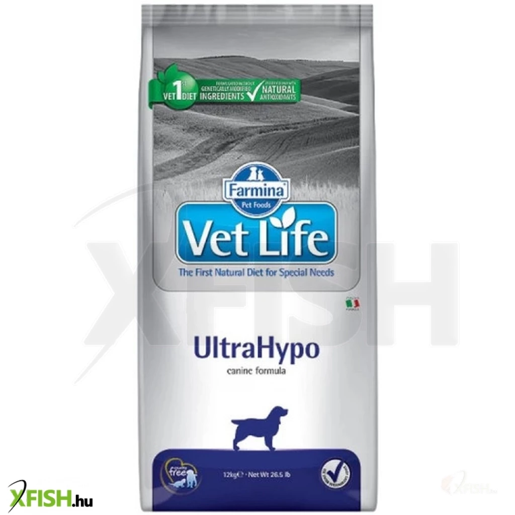 A Farmina Vet Life Dog Ultrahypo szárazeledel főbb jellemzői: