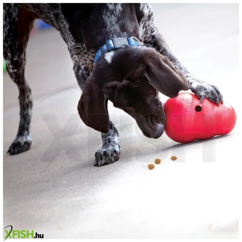 Igazi óriás a jutalomfalattal tölthető játékok között! Kemény műanyagból készült interaktív keljfeljancsi elven működő jutalomfalat-adagoló játék. Az alja lecsavarható így egyszerűen tölthető. A Kong játék egyedülálló természetes gumi összetevői utánozhatatlanok ellenállóságukat tartósságukat és pattogási képességüket tekintve. Rágcsálás barát nem mérgező nem dörzsölő és nem válik élessé vagy szálkássá a rágástól. A felmérések azt mutatják hogy az állatorvosok és kutya idomárok a Kong játékokat ajánlják a legtöbbször világszerte.