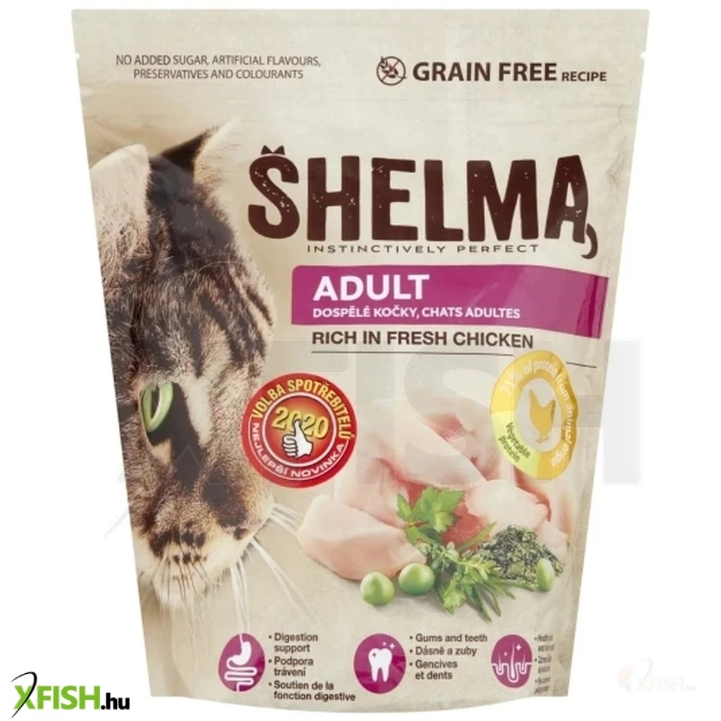 Shelma csirkében gazdag teljes értékű gabonamentes száraz állateledel felnőtt macskák számára.