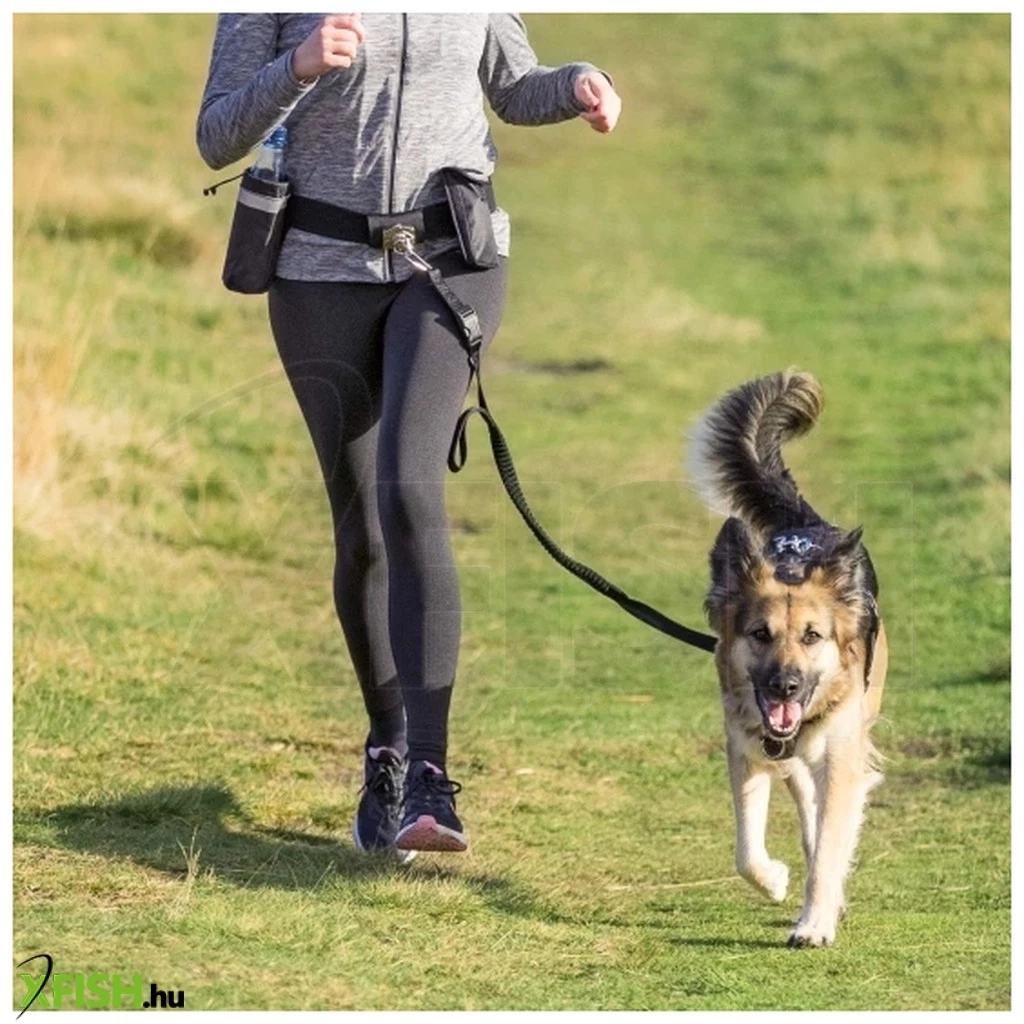 A közepes és kistestű kutyák számára kifejlesztett Trixie derékra rögzíthető póráz segítségével ezentúl sokkal biztonságosabban kocoghat együtt kutyájával. A forgókapocs megakadályozza a póráz csavarodását és a rugalmas póráz lágyítja a hirtelen rántásokat. Strapabíró nylon anyagból készült, 60-120cm között állítható párnázott derékövvel. Több zsebbel, fényvisszaverő alkatrészekkel. A gyorskioldó csattal könnyedén lecsatolhatja a derékövről és kézi használatra is alkalmas.