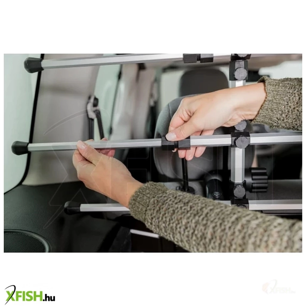 Helytakarékos módon rögzíthető a fejtámlákhoz, a teljes rakodótér kihasználható, állítható szélességben és magasságban. Könnyű súlyú, alumínium anyagú. Fontos: Az átfogó balesetvédelem érdekében használjon minősített autós biztonsági övet.