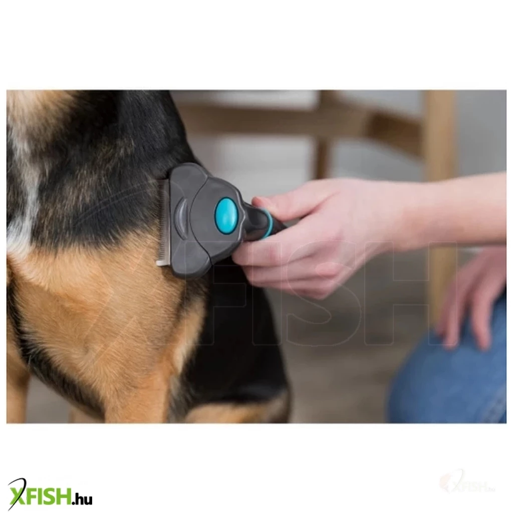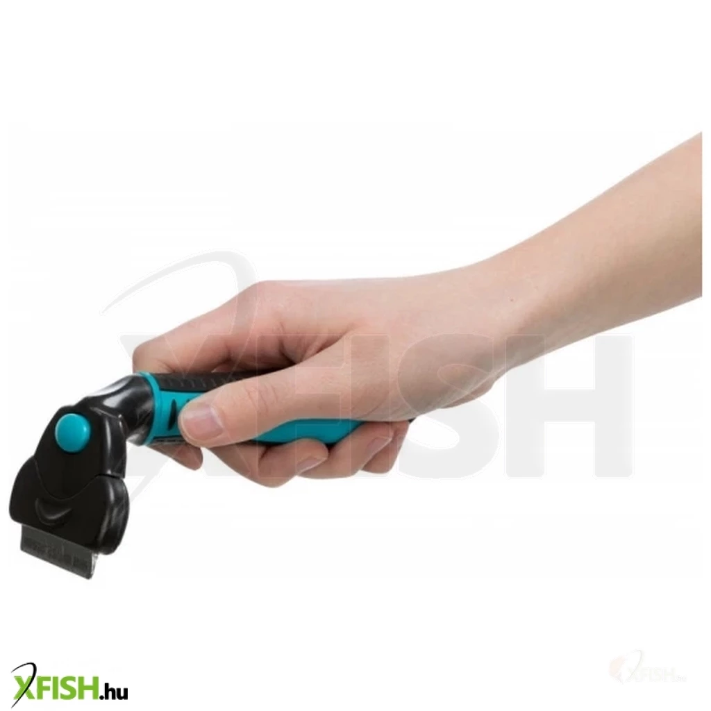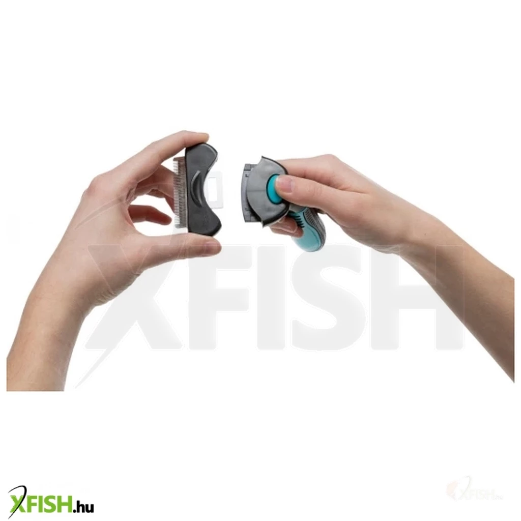 Cserélhető fejű fésű. Méret: 7x15cm. Használatával könnyedén eltávolítható az elhalt szőrzet. A kefe rozsdamentes acél pengéje egyszerűen cserélhető. A fogantyú műanyag, csúszásmentes gumi markolattal. Lovak szőrén is használható.