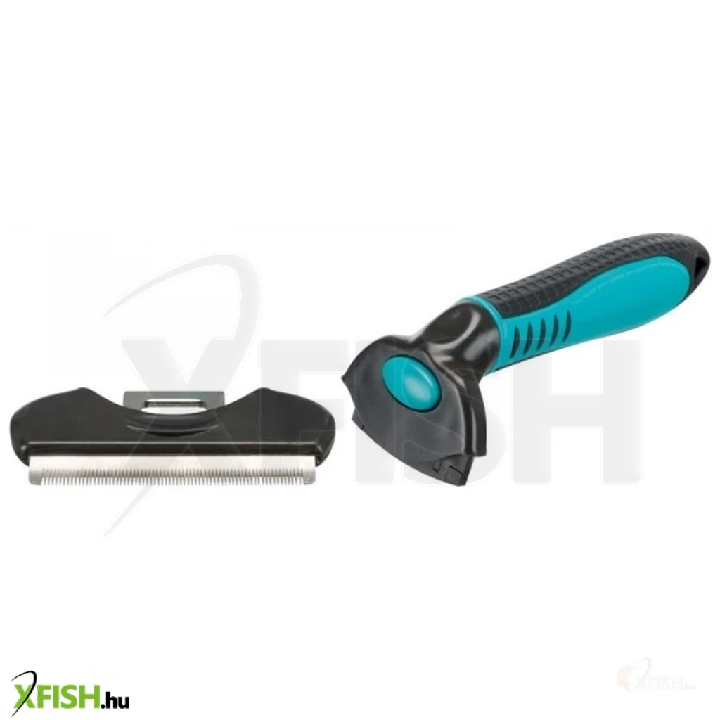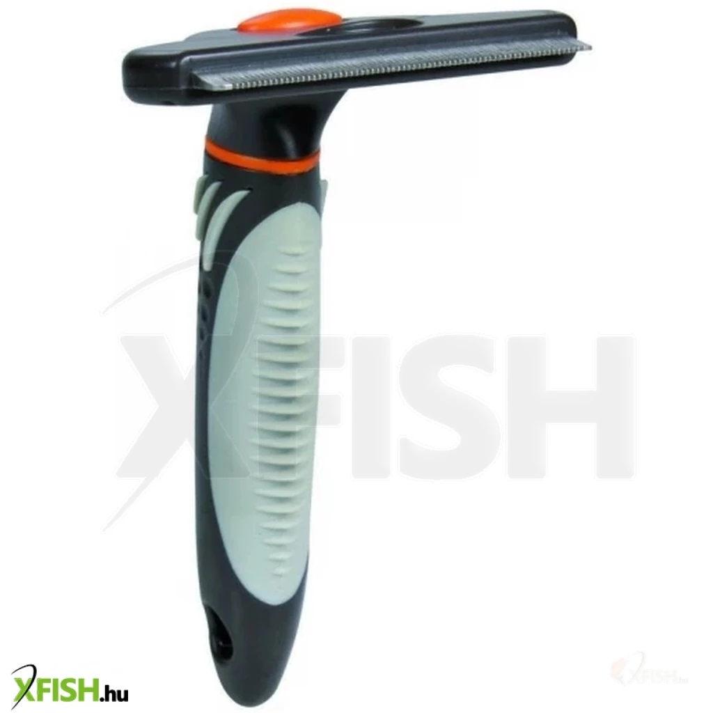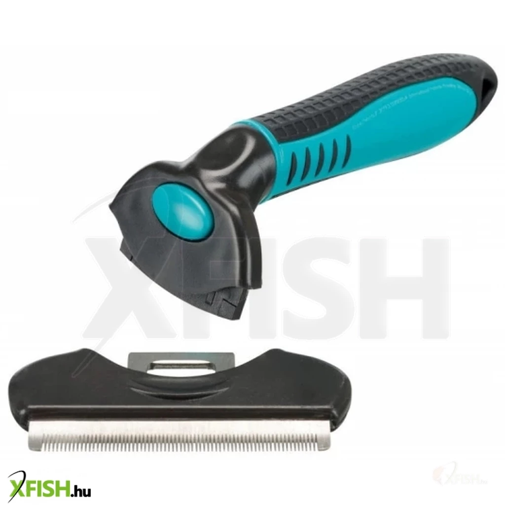 Cserélhető fejű fésű. Méret: 8x14cm. Használatával könnyedén eltávolítható az elhalt szőrzet. A kefe rozsdamentes acél pengéje egyszerűen cserélhető. A fogantyú műanyag, csúszásmentes gumi markolattal. Lovak szőrén is használható.