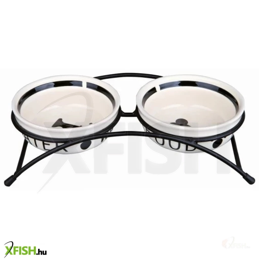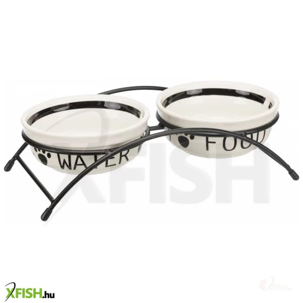 A Trixie kerámia szett előnye, hogy kedvencének nem kell túlságosan lehajolni az ételért, így még élvezetesebb lehet az étkezés. A porfestett állvány végein csúszásgátló gumi került elhelyezésre, ezért az állványt nehéz eltolni, vagy felborítani. A nagy űrtartalmú fehér kerámia tálak modern design-t kaptak. Feliratokkal és motívumokkal díszített. A tálak kézzel és mosogató gépben is tisztíthatóak. A tálak mérete: 15cm Űrtartalma: 2x1,6L Színe: Fekete-fehér