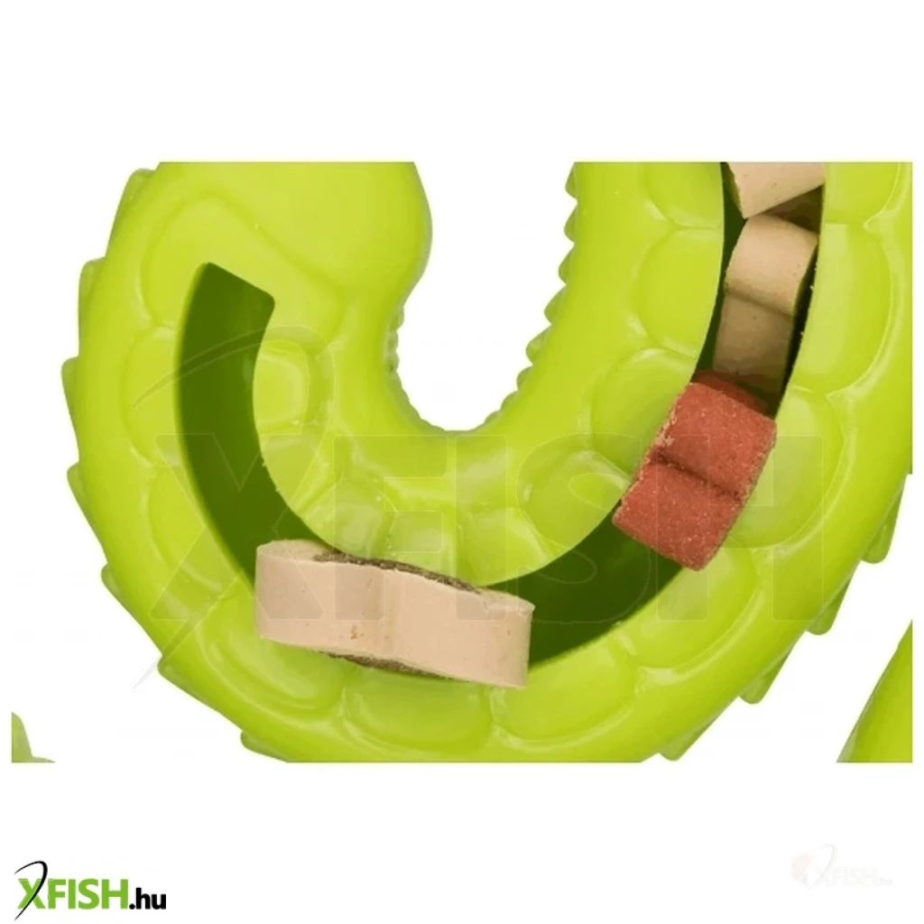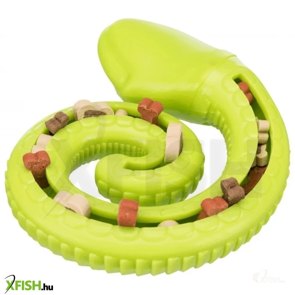 A Trixie hőre lágyuló (tpr) kígyó alkalmas jutalomfalatok, vagy paszták elrejtésére. Átmérője 18cm. A játék hangot ad ki, így garantáltan felkelti kedvence figyelmét egy könnyed játékra invitálja. Figyelmeztetés: Ne hagyja kedvencét felügyelet nélkül a játékkal. Használat után gondoskodjon a játék megfelelő tisztításáról.