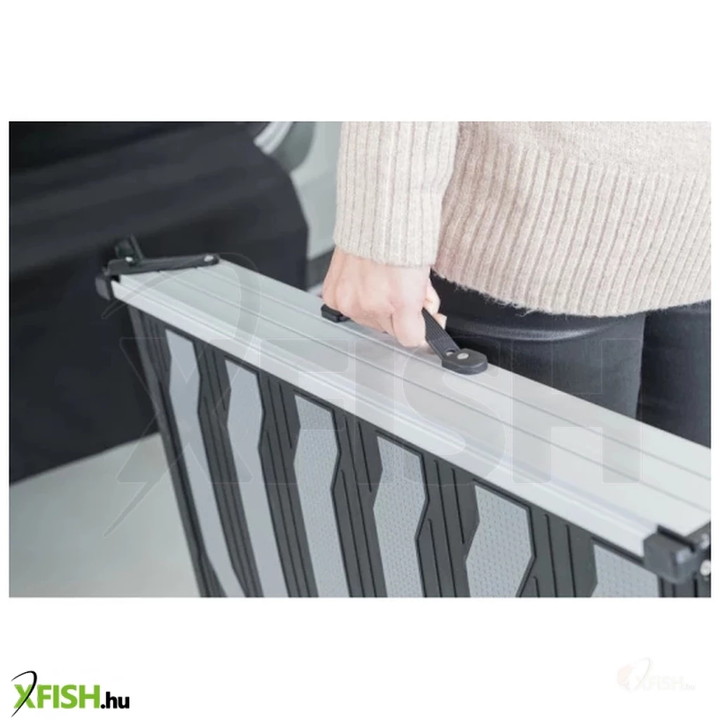 A hozzá tartozó lökhárítóvédelem megakadályozza a karcolásokat. Tároláshoz a rámpa összecsúsztatható, így helytakarékosság érdekében az autóban tárolható.