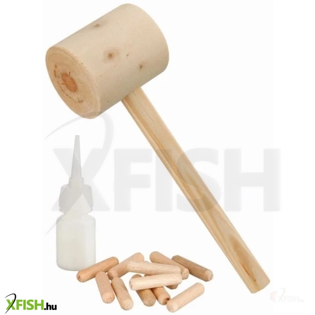 helyezzen be 4 fatiplit. Annak érdekében, hogy a fészekdoboz stabil legyen, mindig üsse be a fadübeleket a fakalapáccsal, hogy ne essenek ki.