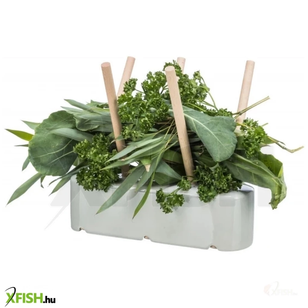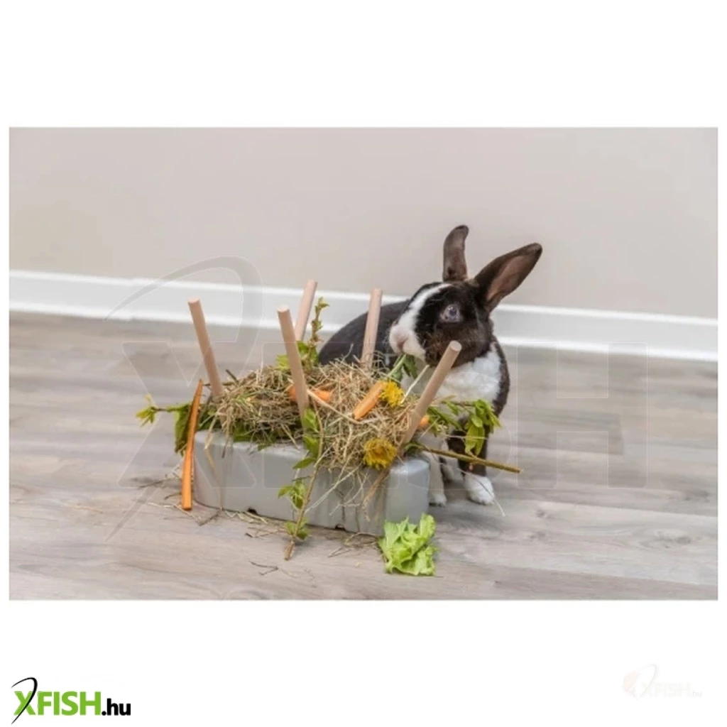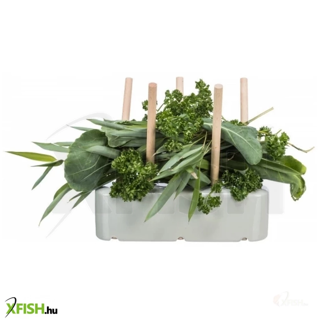 Ha friss zölddel, vagy szénával, esetleg faágakkal szeretné meglepni kedvencét, akkor ezzel a kerámia és fa elemekből álló tartóval higiénikusan tálalhatja fel kedvencének.