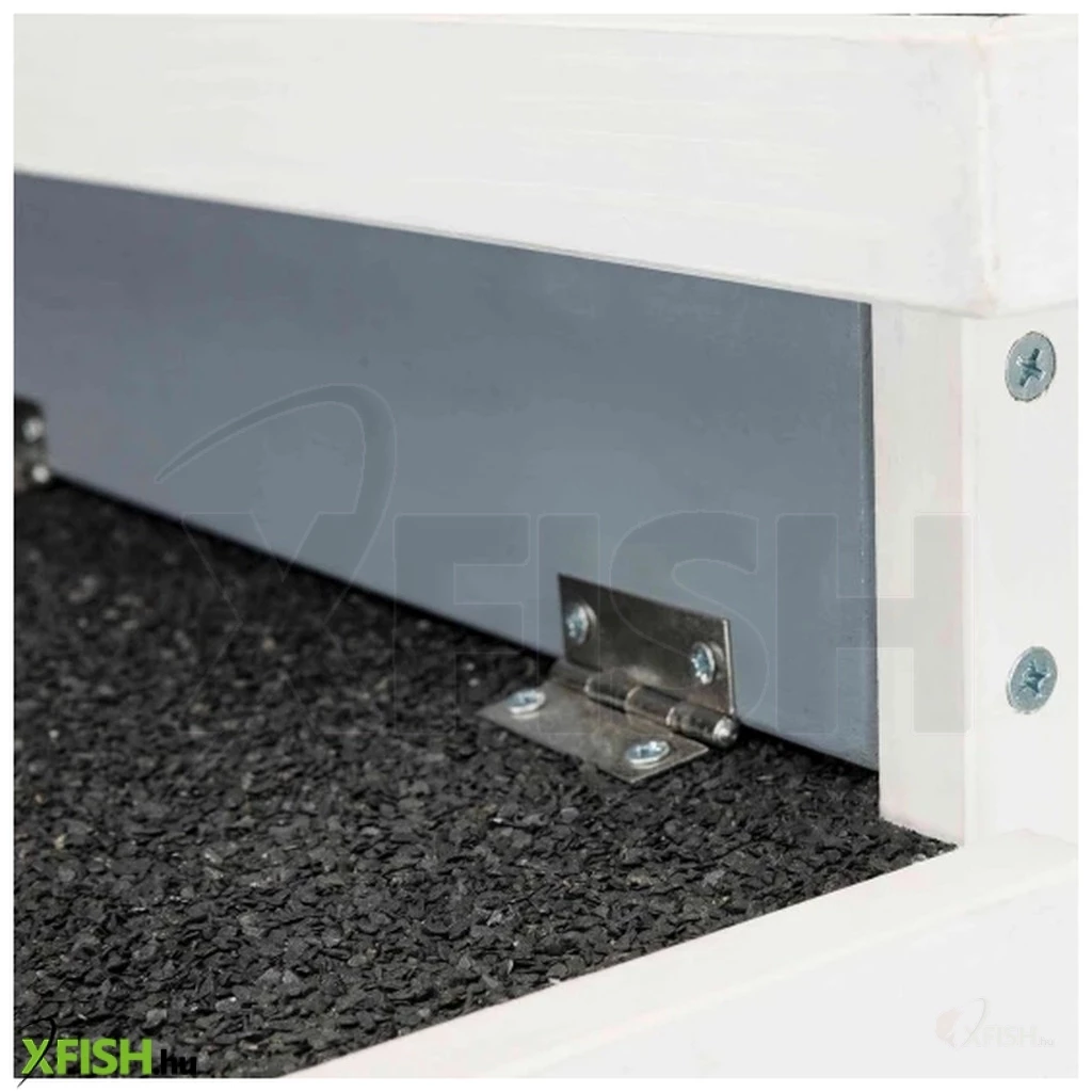 Az ajtók zárhatóak. Figyelmeztetés: Ne zárja be kedvencét a faházba. A lábak védenek a talaj nedvességétől és hidegétől, és jó levegőkeringést biztosítanak a kunyhó alatt.