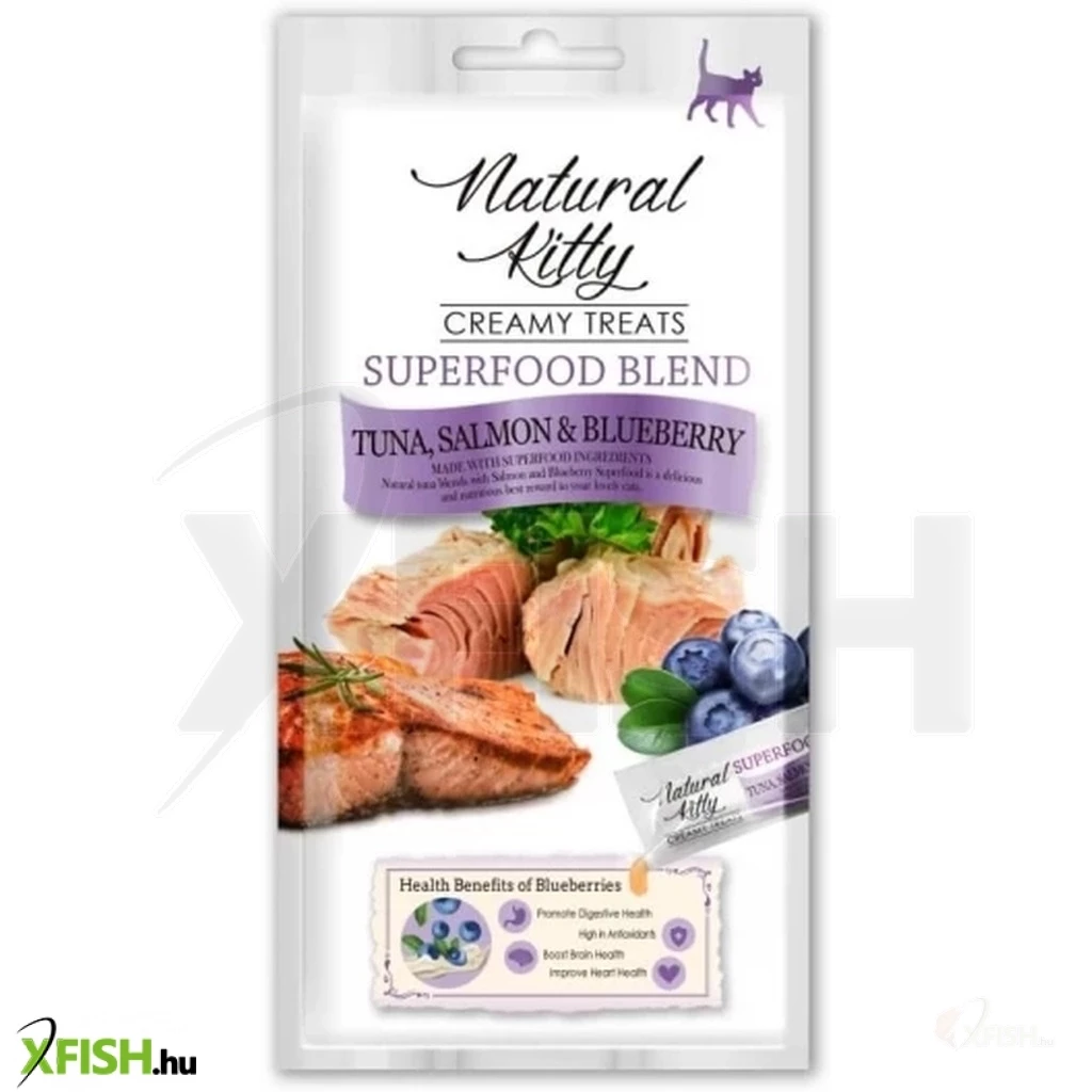 A Natural Kitty egyedülálló superfood keveréke tonhal lazaccal és áfonyával segíti a macskád egészséges étkezését, és lehetővé teszi, hogy élvezze az ízeket, amelyek a természetes és magas minőségű összetevőkből származnak.