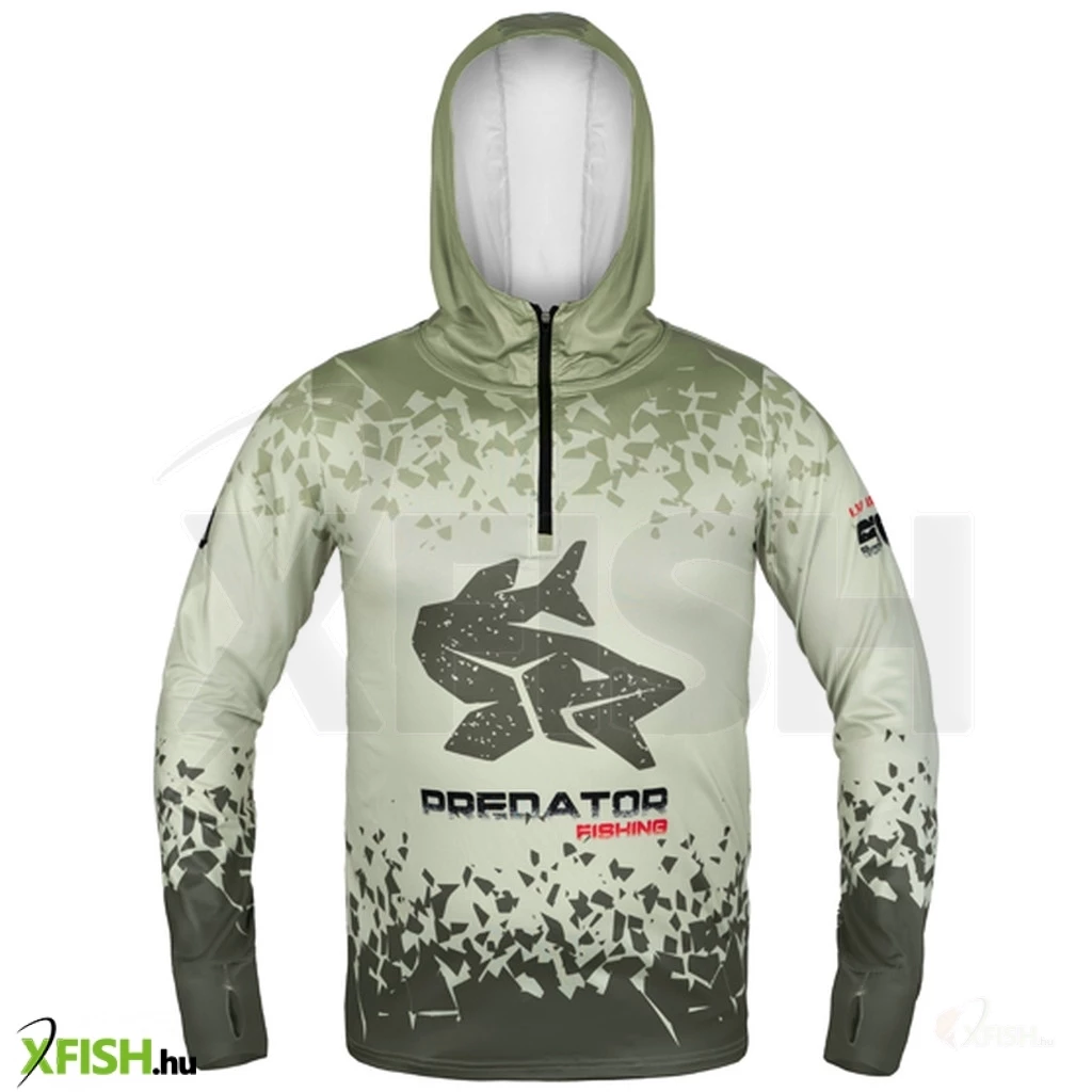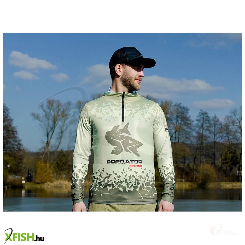 A ragadozóhalas horgászat kedvelőinek bemutatjuk a Delphin UV ARMOR 50+ Predator kapucnis pólót, amely kiváló védelmet nyújt a közvetlen napsugárzás ellen a nyári napokon. A felhasznált anyag UPF 50+ védelemmel rendelkezik, amely megakadályozza az érzékeny bőr leégését, miközben kellemesen hűvös tapintású, még a legmelegebb napokon is.