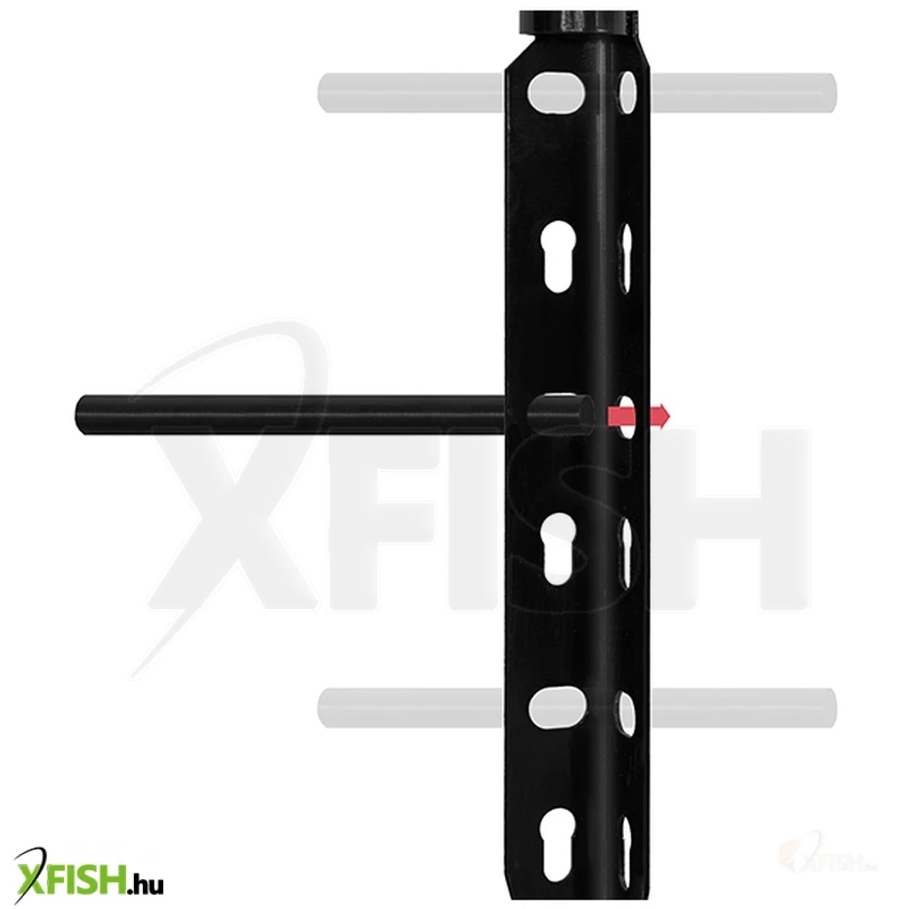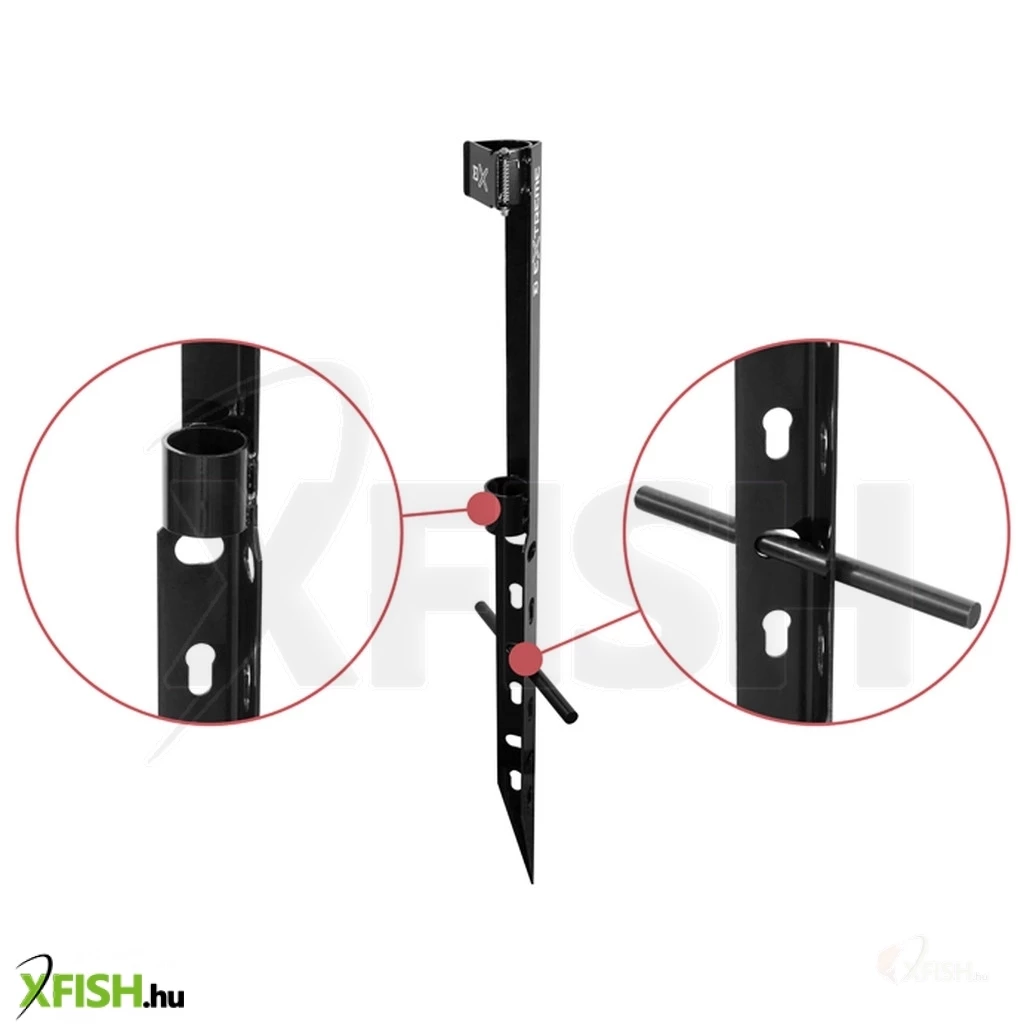 A felső részen található erős zárszerkezet biztonságosan a helyén tartja a harcsázó botot, megakadályozva annak kiesését egy erőteljes kapás során. A hegesztett bottartóval együtt ez garantálja, hogy a bot minden körülmények között stabilan a helyén maradjon. A víz felgyülemlésének megelőzése érdekében két vízelvezető kivágás található a tartó alján.