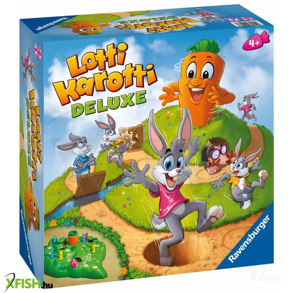 A Lotti Karotti Deluxe - Tréfás Répák társasjátékkal szórakoztató nyúlversenyt rendezhet a család apraja és nagyja. A Deluxe kiadás játékszabálya ugyanaz, mint az eredeti Lotti Karotti díjnyertes társasjátéknak: a nyúlcipőt húzó tapsifülesek célja, hogy elérjék az óriásrépát, ami pontosan a játéktáblaként szolgáló dombocska közepén kandikál ki a földből.