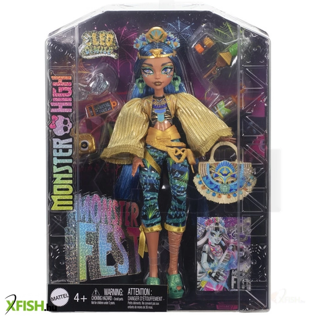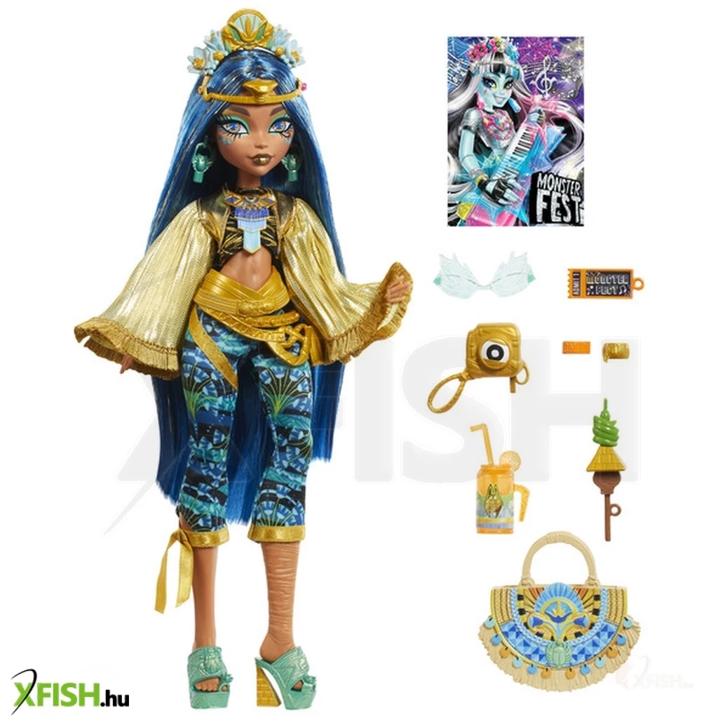 Monster High Monster Mulatság Cleo De Nile baba egy különleges játékfigura, amely a Monster High sorozat egyik ikonikus karakterét ábrázolja. Cleo De Nile egy egyiptomi hercegnő, aki mindig stílusosan jelenik meg, és ez a baba sem kivétel.