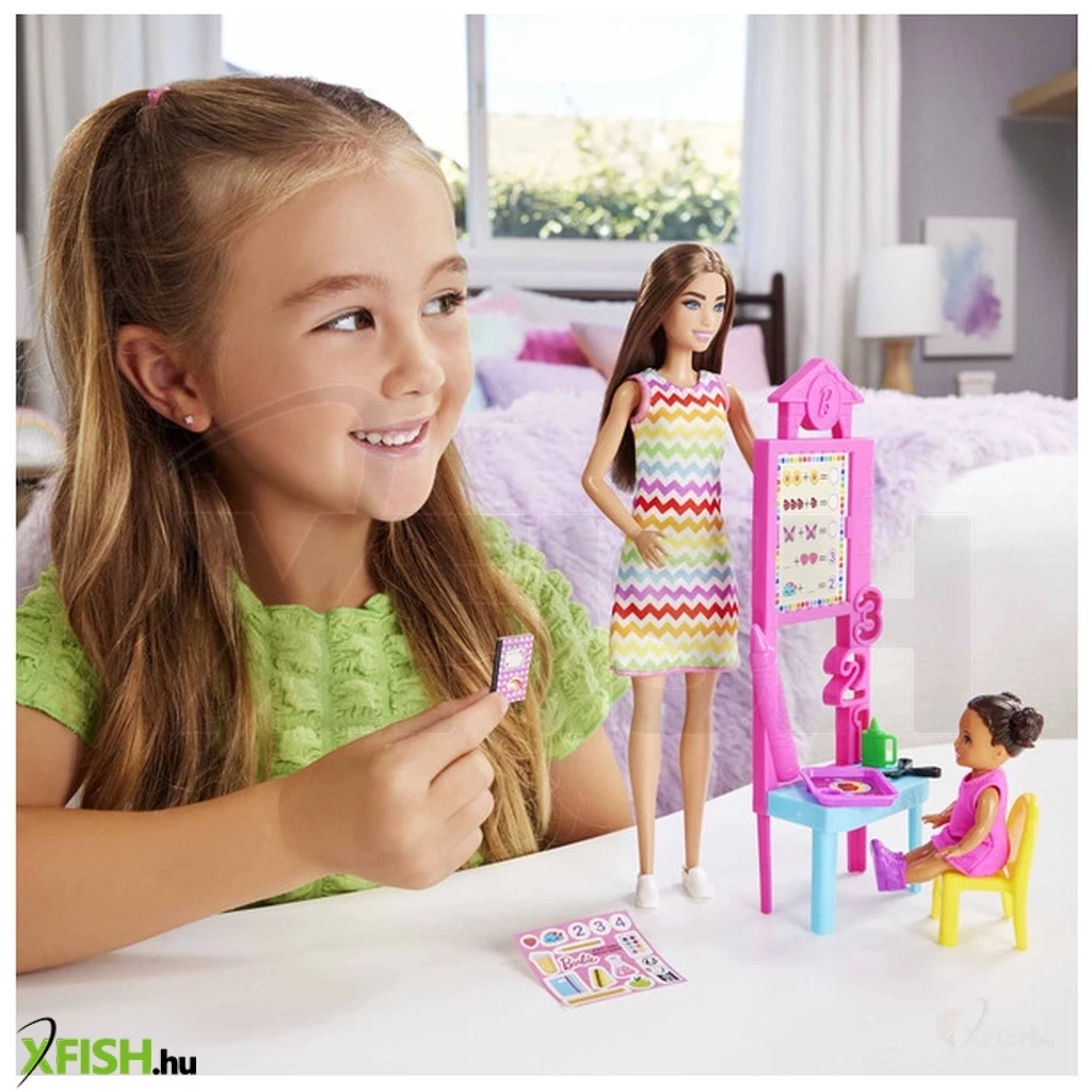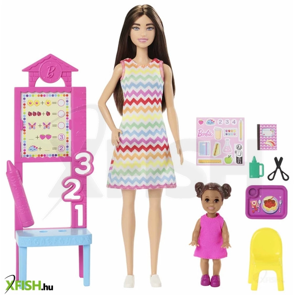 A Mattel Barbie Karrier játékszett – Tanító néni egy inspiráló és kreatív játék, amely Barbie-t a tanári szerepbe helyezi, hogy a gyerekek higgyenek a tanulás és a tudás örömében. A készlet Barbie tanítónénit tartalmazza, iskolai kiegészítőkkel – mint tábla, könyvek, írószerek és egyéb tantermi eszközök – amelyekkel a gyerekek eljátszhatják az iskolai mindennapokat, tanórákat és tanulós helyzeteket. A játék fejleszti a kreativitást, kommunikációs készségeket, empátiát és problémamegoldó gondolkodást, miközben segít megérteni a tanulás fontosságát és a tanári szerep értékét. Tökéletes ajándék minden kis Barbie-rajongónak és tanulni vágyó gyermeknek!