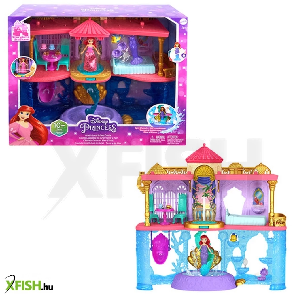 Minden hercegnőnek jár egy kastély. A Disney hercegnők - Ariel dupla palota mini hercegnővel készlettel azonnal elrepülhetsz a kis hableány világába. Az egymásra építhető palota felső szintje szárazföldi, alsó szintje pedig víz alatti kastély és mindkettő rengeteg játékteret, bútorokat és kiegészítőt rejt. A ruhák és a hideg- és melegvíz hatására színváltó uszony segítségével Ariel ember és hableány is lehet, így a gyerekek és a rajongók eljátszhatják kedvenc történeteiket. A baba nem áll meg magától.