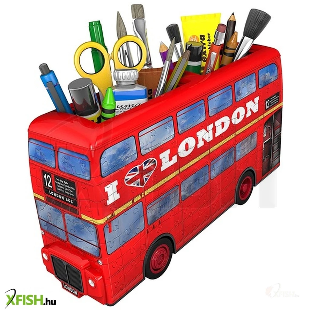 Rakd ki a piros emeletes buszt, és használd tolltartóként! A London busz 216 darabos 3D puzzle egy három dimenziós kirakós, ami egy Londonban használt buszt testesít meg. A busz ragasztó nélkül állítható össze, a mozaikdarabok hátoldalán számozást és nyilakat is találsz, hogy könnyebb legyen összerakni. A busz teteje üreges, és tolltartóként is tudod használni. A London busz 216 darabos 3D puzzle összerakott méretei: 28 x 7 x 21 cm.