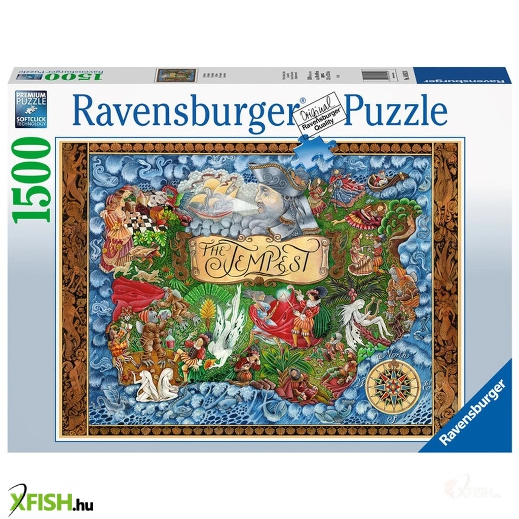 Az 1500 darabos 'A vihar' Ravensburger puzzle gyönyörűen illusztrált jeleneteket ábrázol Shakespeare, a sikeres drámaíró művéből. Kapaszkodj meg, mert ez a kirakó viharos élményt ígér! 12 évvel azután, hogy kislányával együtt menekülnie kellett, Prospero egy varázslat segítségével vihart idéz, mely megkínozza a hajótörés túlélőit. - Shakespeare 'A vihar' című művének izgalmas kezdete ez, amely most puzzle formájában is felfedezhető. Éld át a klasszikus dráma varázsát, miközben a Ravensburger puzzle darabkáit illeszted össze egy tökéletes képpé.