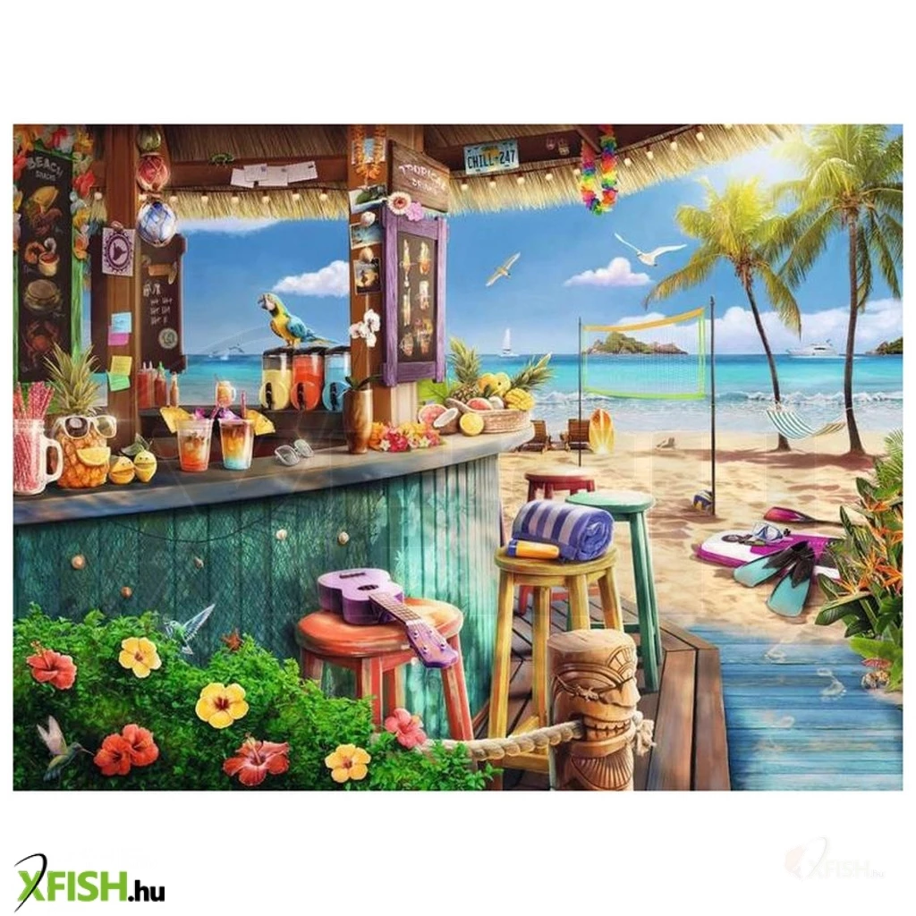 A Ravensburger 1500 db-os puzzle - Beach Bar című képen egy hangulatos tengerparti bár jelenik meg.