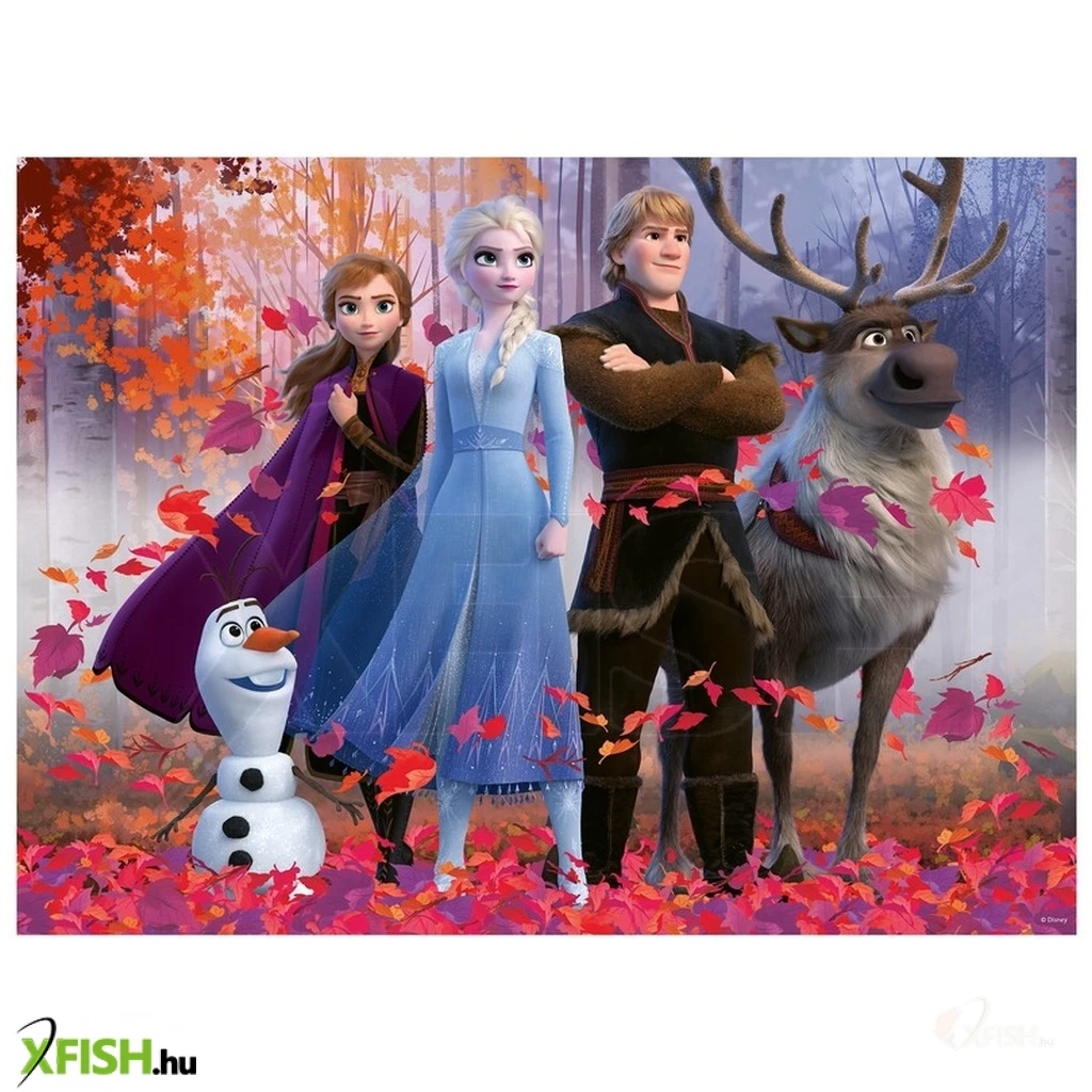 A Jégvarázs 2 rajzfilm szereplői, nagyobb puzzle változatban! A Jégvarázs 2 Mágikus erdő 100 darabos puzzle a Frozen 2 mese főszereplőit, Anna és Elza hercegnőket, Kristoff herceget, Sven-t a rénszarvast, és Olafot a hóembert ábrázolja. A kirakós mozaikdarabjai könnyen illeszkednek egymáshoz, a puzzle élénk színvilággal készült. A Jégvarázs 2 Mágikus erdő 100 darabos puzzle kirakott méretei: 49 x 36 cm.