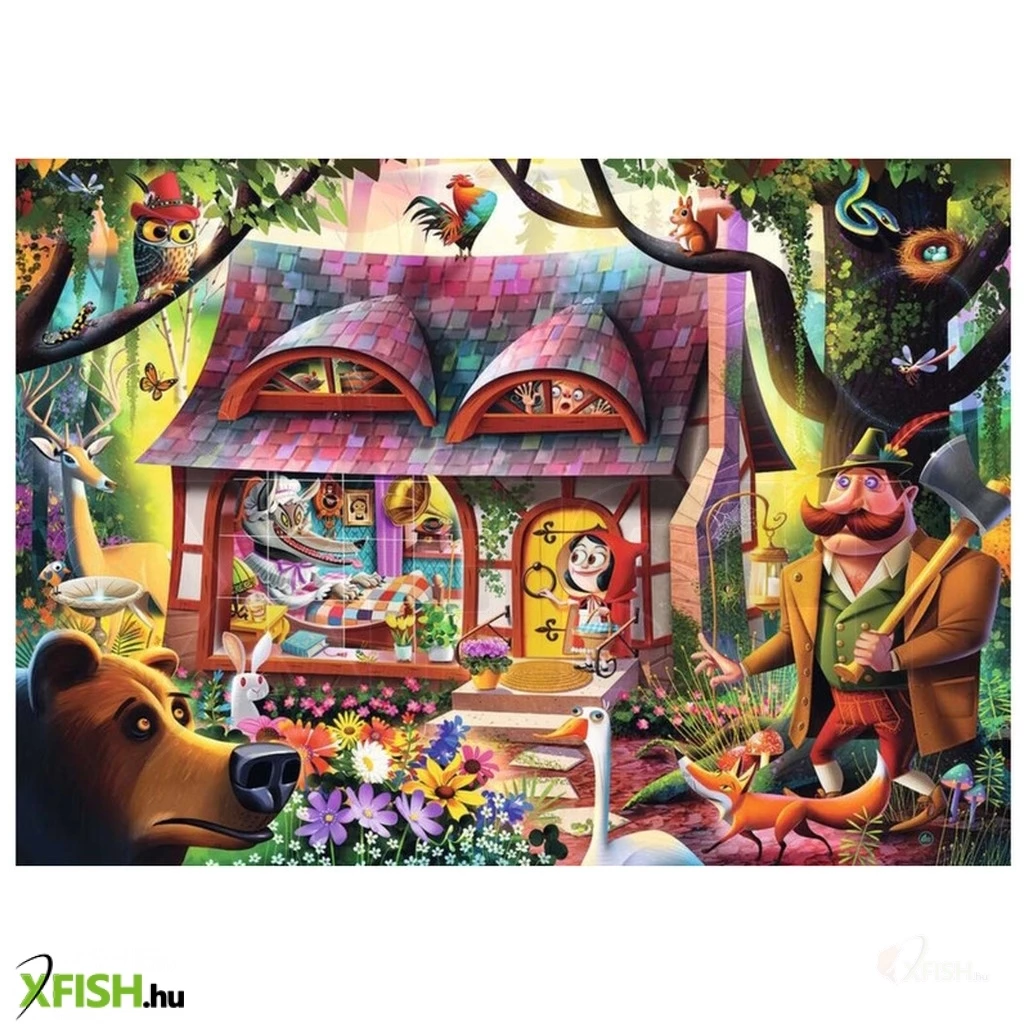 A Ravensburger 1000 db-os Come In, Red Riding Hood című képen Dean MacAdam dél-kaliforniai illusztrátor egyik alkotása látható, amit a Piroska és a farkas mese ihletett.