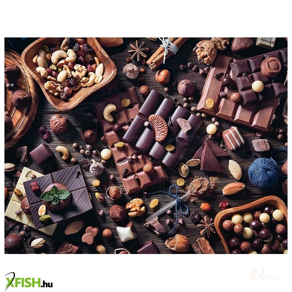 A Ravensburger 2000 db-os puzzle - Csokoládémenyország című képen isteni finomságok láthatók.