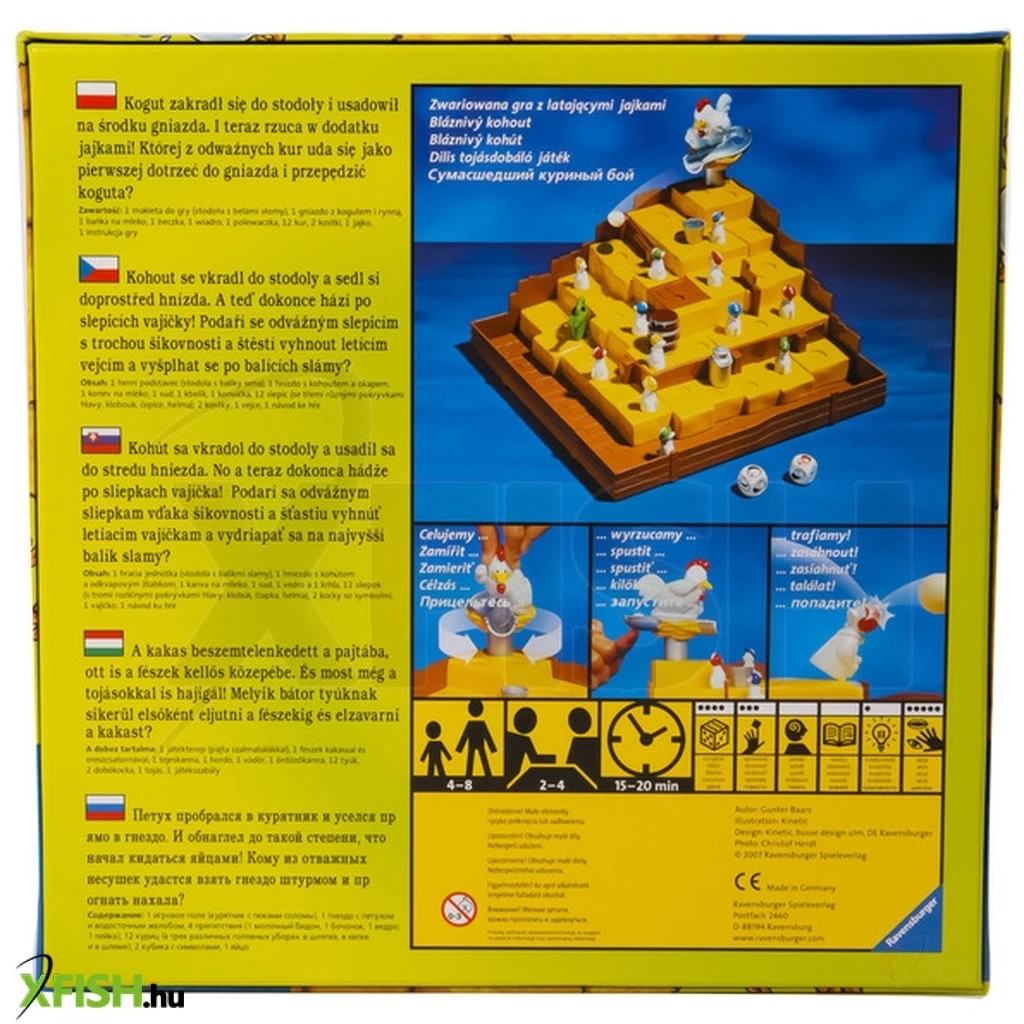 Kergesd ki a kakast a pajtából! A Kiki Ricky társasjátékban a szemtelen kakas a pajta közepén lévő fészekbe beszemtelenkedett. A tyúkoknak kell onnan elza-varniuk, de nem lesz egyszerű a dolguk. A Kakas tojásokkal próbálja távol tartani a tyúkokat, akiknek az útját még tejeskanna, öntözőkanna, vödör és hordó is útját állja! A játékosok felfelé haladnak a fészekben, és aki először eljut a kakas-hoz, megnyeri a játékot.