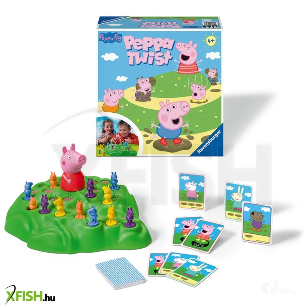 Biztosan ismered a tévéképernyőről az aranyos kismalacot, Peppa malacot. De tudtad, hogy a Peppa Twist társasjáték segítségével akár be is költözhet a gyerekszobába- Versenyezzetek, hogy ki ér elsőként a domb tetején lévő Peppa malac figurához a Zsoli figurával. Mozogj a kártyáiddal, de vigyázz, hova lépsz, mert nem mindig biztonságos. Amikor Peppa megfordul a dombon, néhány pocsolya helyén hirtelen nyílás tátong, amelybe Zsoli beleesik.