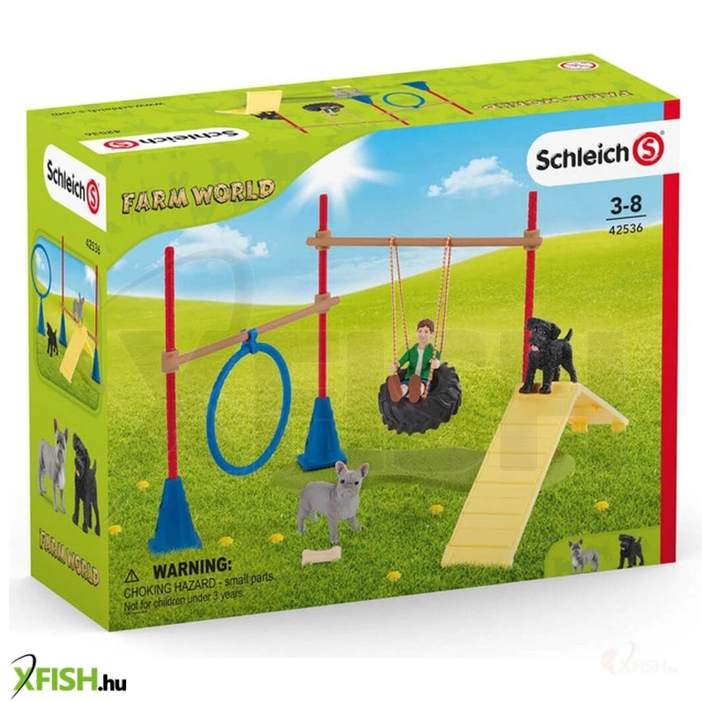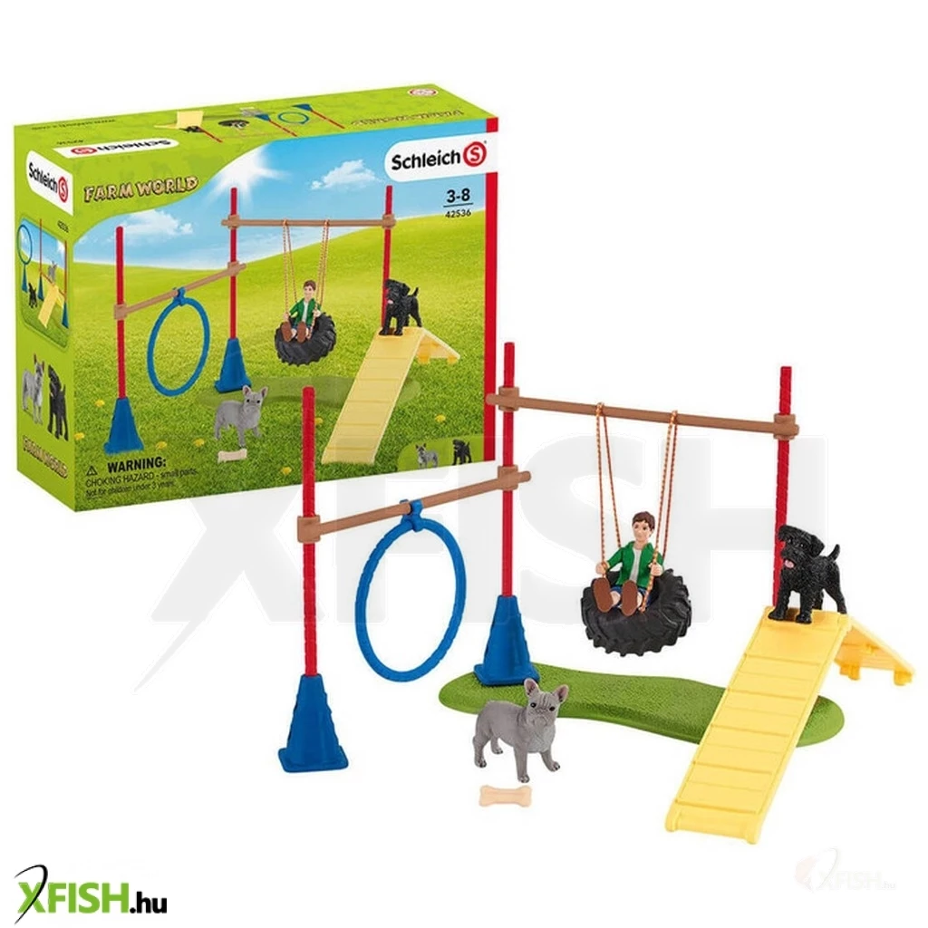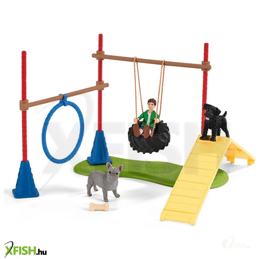 Hogy kutyái, Rosi és Bobby fittek maradjanak és menő trükköket tanuljanak, Ben idomítja őket a Schleich(R) farm world új Puppy Agility Training készletével! Megtanítja buldogját, Rosit és törpe schnauzerét, Bobbyt, hogyan kell egyensúlyozni a hintán és átugrani a gyűrűkön. A kutyák minden egyes tréninggel fejlődnek. Miközben az ebek a jutalomcsonton osztozkodnak, Ben olyan magasra lendül a gumihintán, amilyen magasra csak tud. Annyira jó móka! A készlet elrendezése variálható, és határtalan játékélményt nyújt!