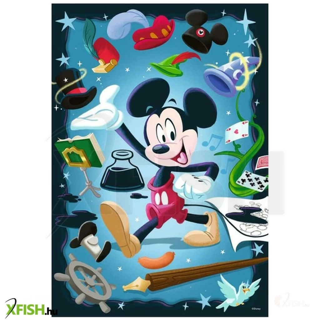 A Ravensburger 300 db-os puzzle - Disney 100 - Mickey Mouse című képen a mindig vidám egér és a mesékben felfedezhető sok-sok kiegészítő látható.