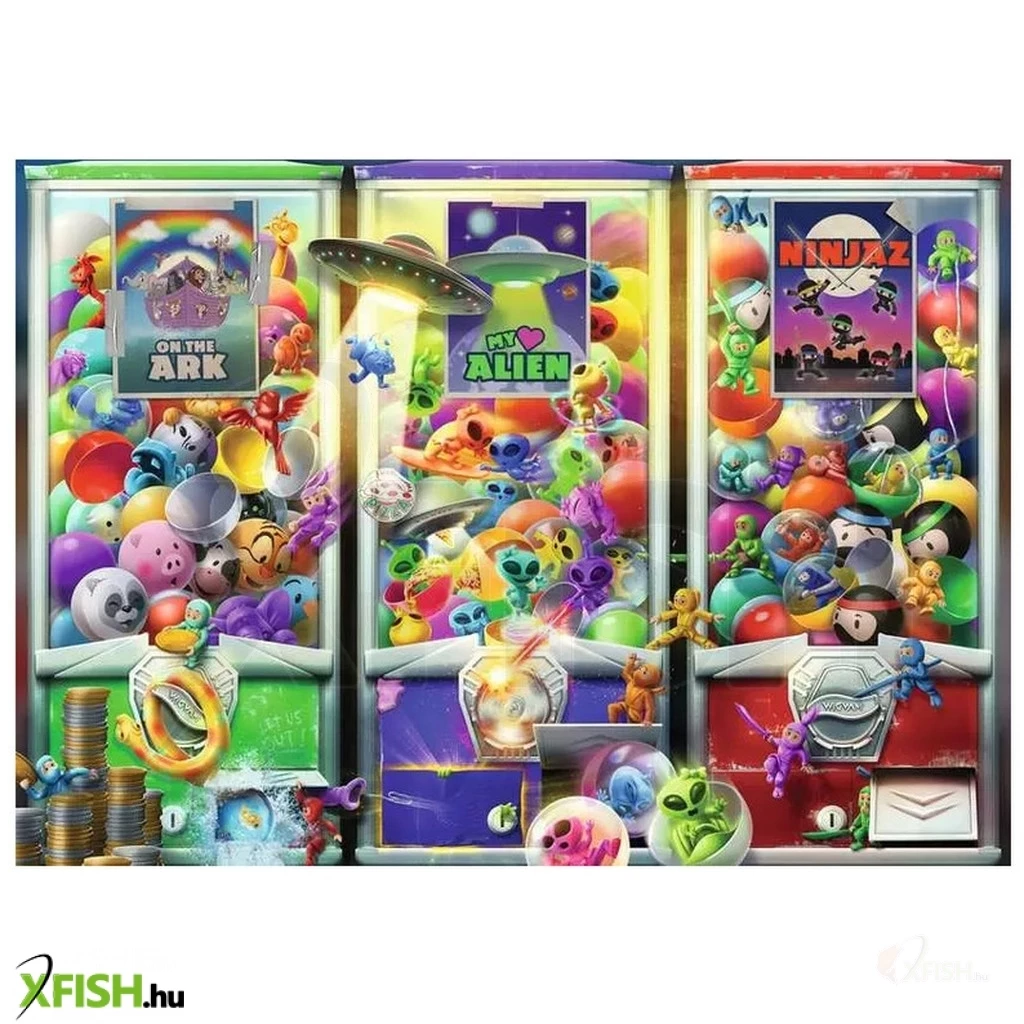 A Ravensburger puzzle – Animals, Aliens and Ninjas, 1000 darabos egy színes és izgalmas kirakós játék a nagyobb puzzle-rajongóknak, különösen a fantázia- és akciókedvelő gyerekeknek. A puzzle játékos jelenetekben ábrázolja a különféle állatokat, földönkívüli lényeket és ninjákat, miközben fejleszti a koncentrációt, a finommotorikus készségeket és a problémamegoldó képességet. A 1000 darabos darabok prémium minőségűek, masszívak, precízen illeszkednek, biztonságos anyagból készültek, éles szélek nélkül, így hosszabb játék során is teljesen biztonságosak. A részletgazdag, élénk színek órákra lekötik a játékosokat, miközben kreativitásukat és kitartásukat is fejlesztik. Tökéletes választás családi délutánokra, hosszabb szórakozáshoz vagy ajándéknak mindazoknak, akik szeretik a fantáziadús, akciódús és prémium minőségű puzzle-ket.