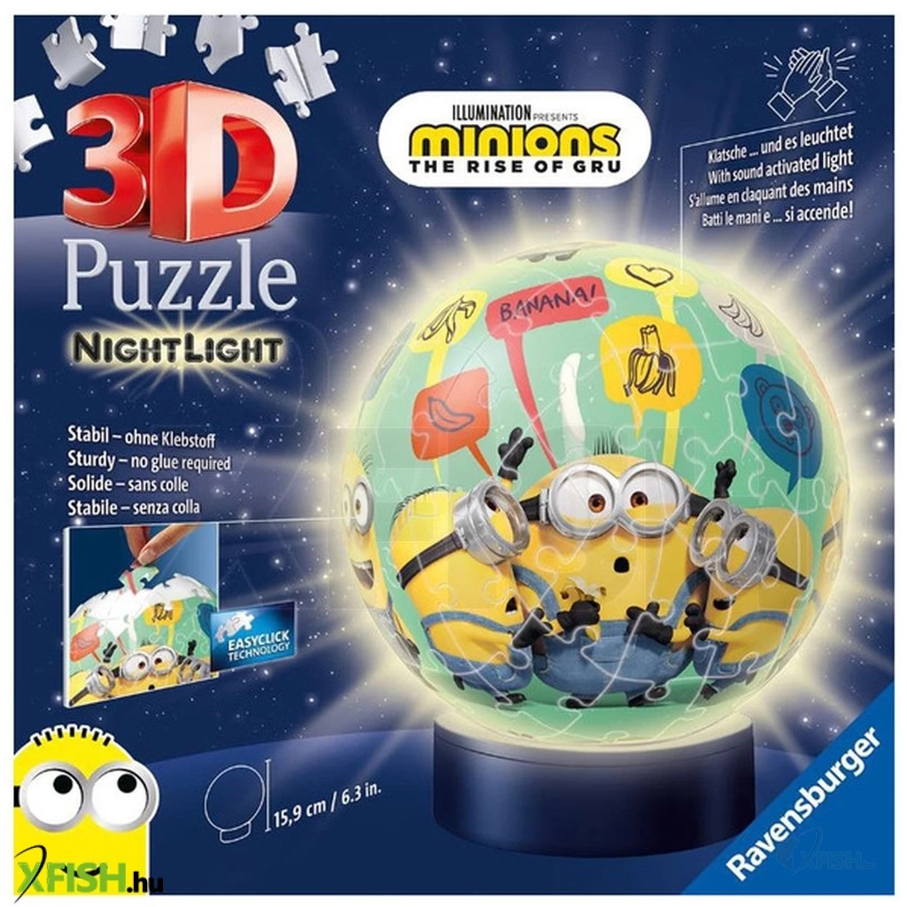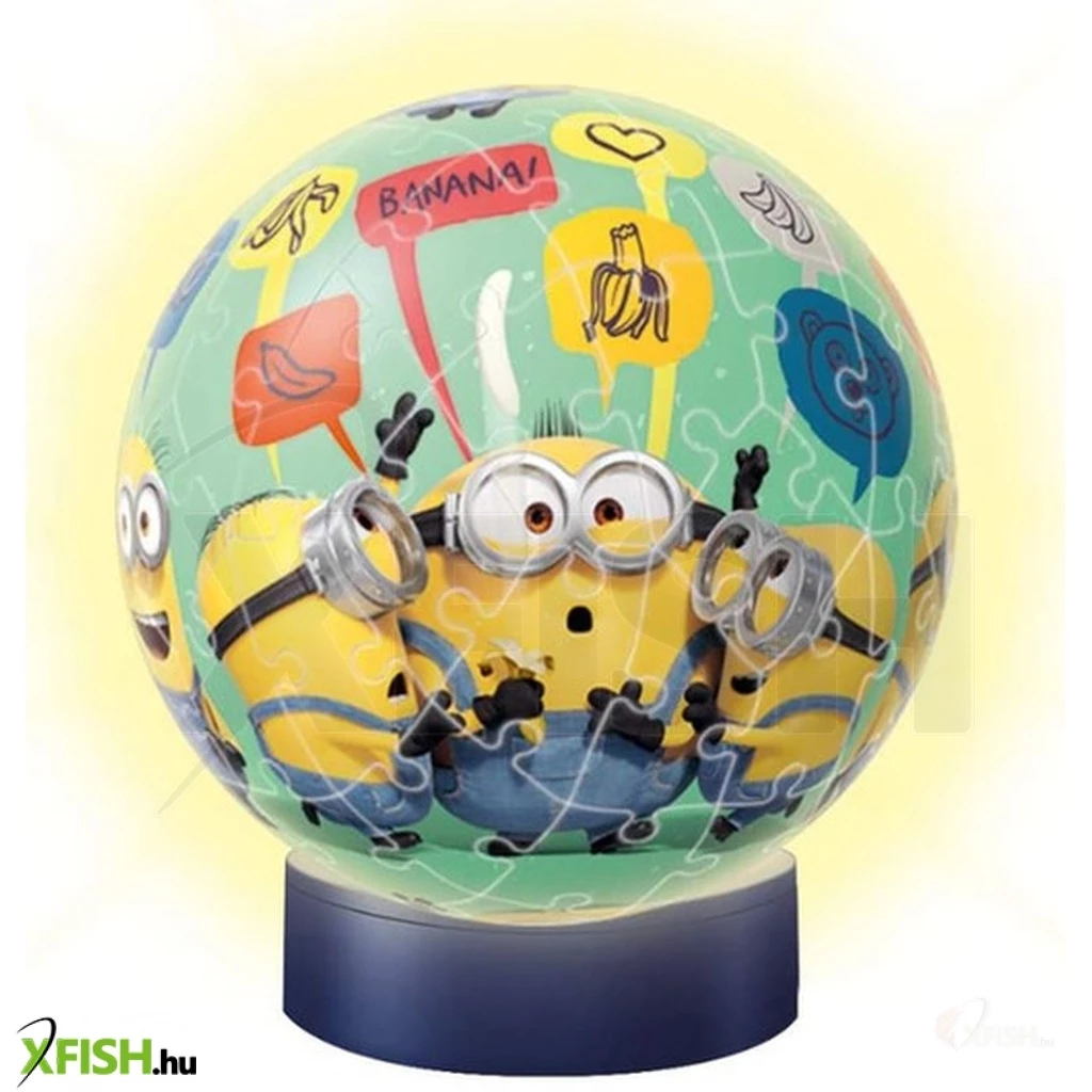 A kb. 13 cm átmérőjű gömb nemcsak kirakóként nyújt élményt, hanem egyben hangulatos éjjeli fényként is funkcionál, hiszen a mellékelt LED-es talapzat belülről világítja meg az elkészült alkotást , így tökéletes dísze lehet bármely gyerekszobának, miközben fejleszti a térlátást, a koncentrációt és a finommotorikus készségeket, ideális választás 6 éves kortól minden Minyon rajongónak.