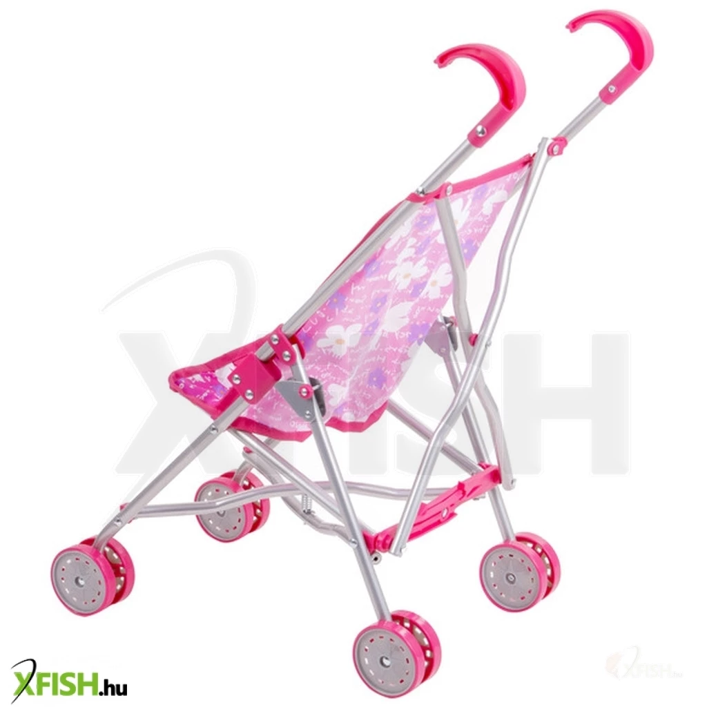 Erős fémvázas, rózsaszín mintás babakocsi, játékbabád számára! A Fémvázas sport babakocsiba be tudod ültetni kedvenc játékbabádat és elviheted sétálni jó időben. A babát a rózsaszín mintás ülésbe kétpontos biztonsági övvel tudod rögzíteni, a sport fémvázas babakocsi pár mozdulattal könnyen összecsukható. Kinyitott méretek: 42 x 28 x 55 cm.