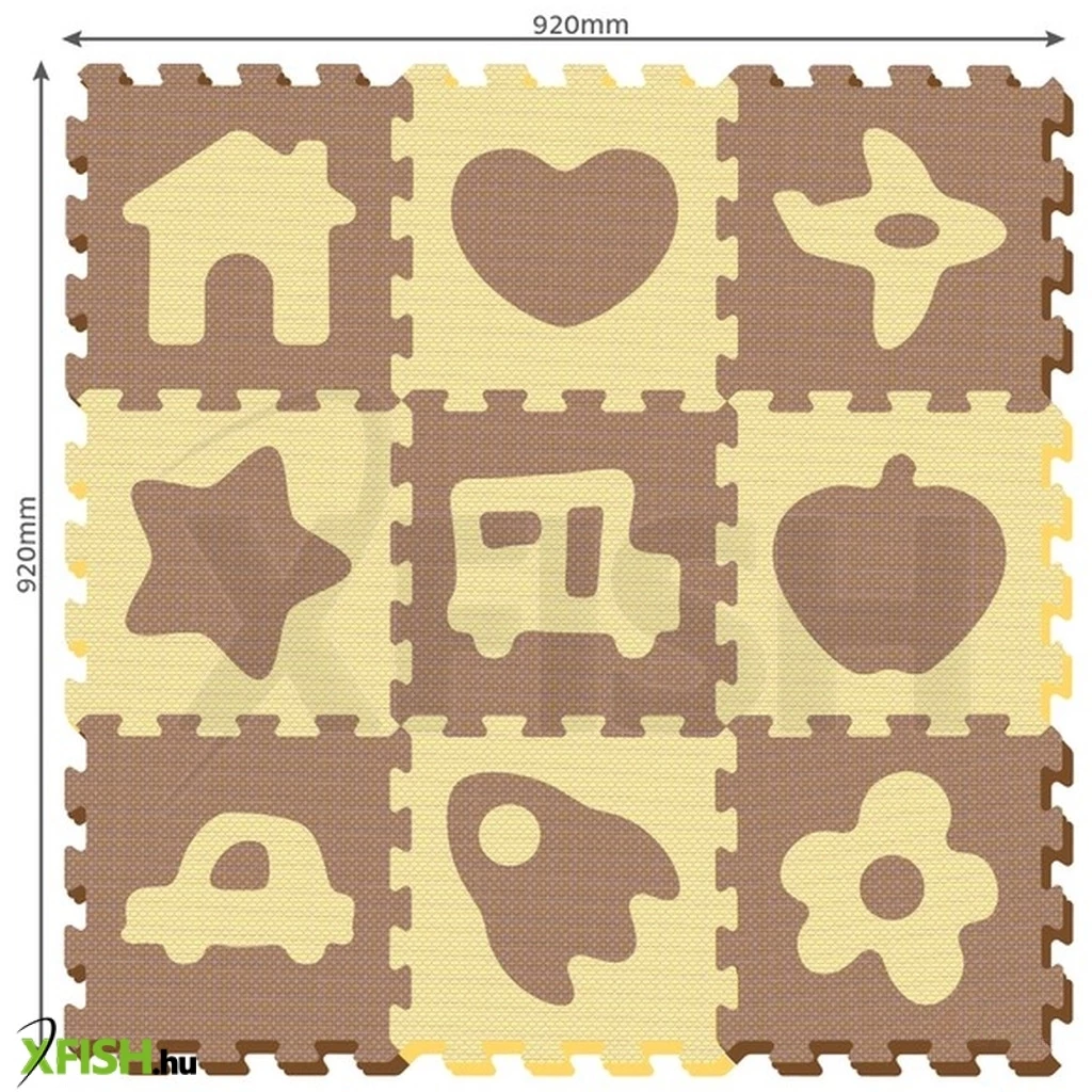 Rakj össze egy nagy és biztonságos szőnyeget szivacsos lapokból! A Ház és autó 9 darabos habszivacs szőnyeg puzzle barna színű, erős habszivacsból készült lapokat tartalmaz, amik ház, autó és szívecskés mintával is vannak díszítve. A habtapi lapok a szélüknél fogva könnyen összeilleszthetőek, a lapokból egy nagy szőnyeget lehet összerakni, ami még a picit meg is védi esés közben. A Ház és autó 9 darabos habszivacs szőnyeg puzzle lapjainak méretei: 32 x 32 x 1 cm.
