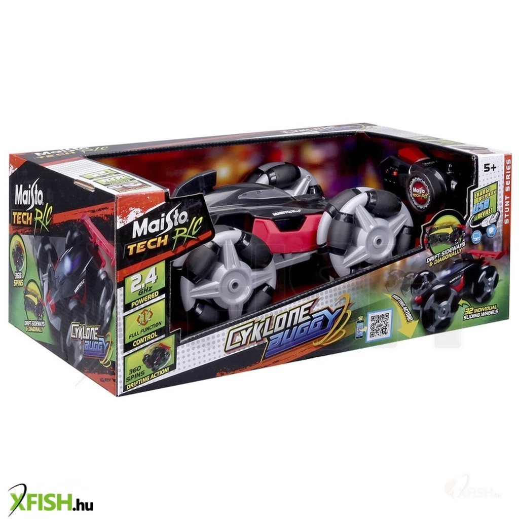 A Maisto Tech Cyklone Buggy Távirányítós autóval garantált szórakozásban lesz részed. A különleges abroncsokkal ellátott autó minden terepen bírni fogja a gyűrődést! 2,4 GHz frekvenciájának köszönhetően pedig akár 35 méter távolságból is képes vagy irányítani járművedet. A kényelmes fogást biztosító távirányítóval minden irányba koordinálhatod autódat, ezzel még izgalmasabbá téve a játékélményt. Taposs bele a gázba a maximum 7,6 km/óra sebességgel haladó távirányítós autóddal és győzd le ellenfeleidet egy autóverseny keretein belül! Éles kanyarokból és fantasztikus vezetési élményből nem lesz hiány autódnak köszönhetően! A játékot USB kábellel töltheted, így könnyedén visszatérhetsz a száguldozásba egy fél órás szünet után! A Tech Cyklone Buggy Távirányítós autó készlet tartalmazza a távirányítót, az USB kábelt és magát a járművet. A járgány mérete 25 cm.