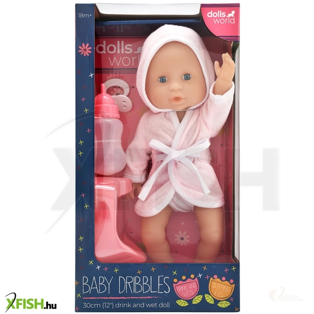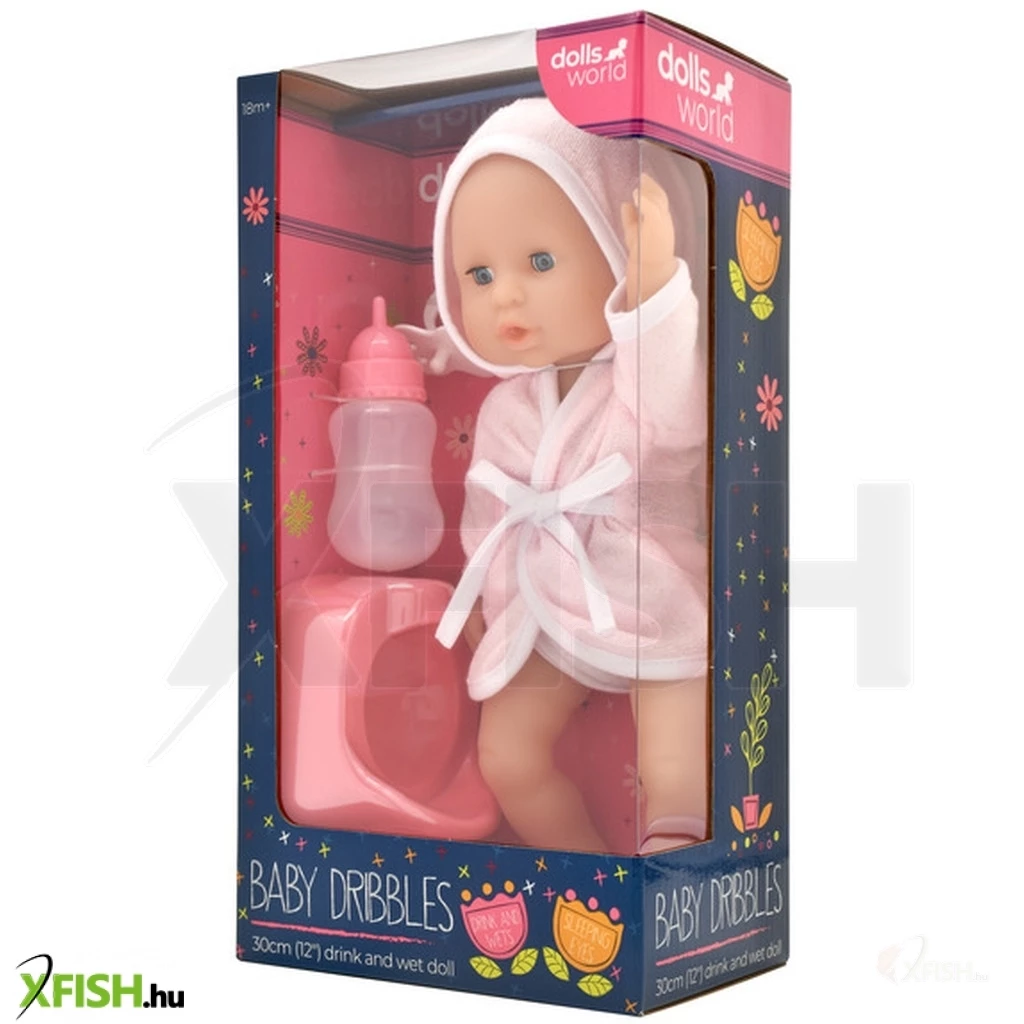 KategóriákKategóriákJátékbaba Hagyományos baba Dolls world baba, 30 cm fürdethető, fürdőköpenyben, bilivel, cumisüveggel