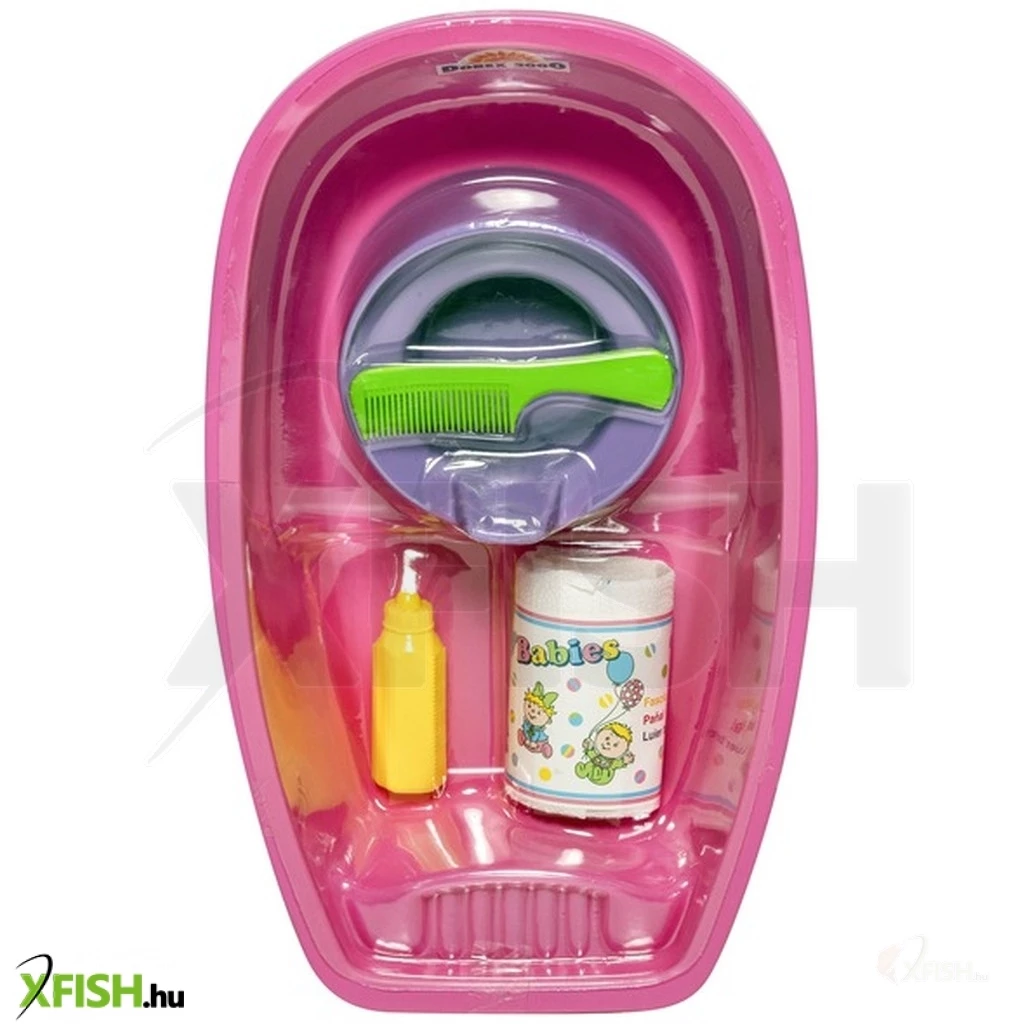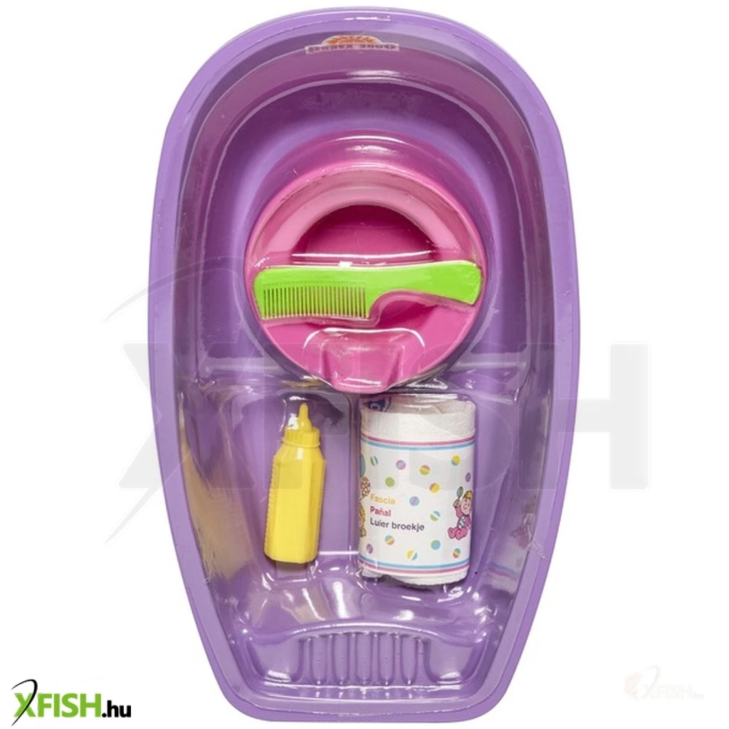 Fürdesd meg a játékbabát, utána tedd tisztába! A Babakád és bili kiegészítőkkel készletben egy nagyobb, műanyag babakádat, fésűt, cumisüveget, pelenkát és bilit találsz, amikkel gondoskodhatsz kedvenc játékbabádról. A kád és a bili könnyen tisztán tartható, a fésűvel ki tudod simítani a baba haját, a pelenkázást és az etetést is bátran gyakorolhatod a készlettel. A Babakád és bili kiegészítőkkel készlet max. 36 cm-es játékbabákhoz használható. Kád méretei: 40 x 24 x 10 cm.