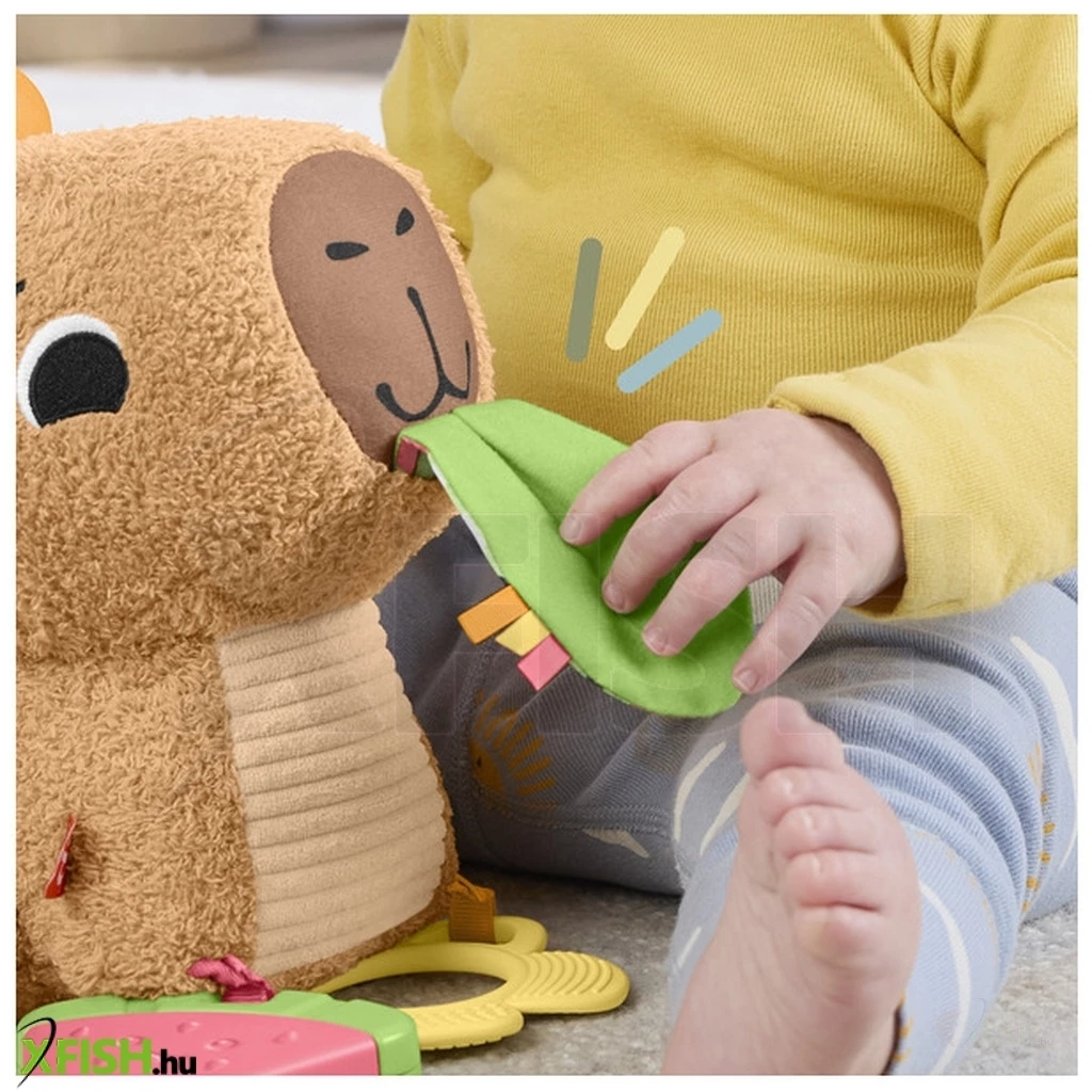Fisher-price sensimals kedves kapibari Ismerd meg a Fisher-Price Sensimals Kedves kapibari plüsst, ami nemcsak aranyos, de különleges érzékszervi élményt is nyújt a legkisebbeknek! Ez a puha, ölelgetnivaló kapibara különféle textúrákkal, finom tapintású anyagokkal és lágy hangokkal stimulálja a babák érzékeit, miközben vidám játékra ösztönöz. A Fisher-Price Sensimals kollekció kifejezetten a kis kezekre és kíváncsi szemekre lett tervezve, így a Kedves kapibari tökéletes társ lesz otthon és útközben is. A barátságos kapibara nemcsak megnyugtat, de segíti a szenzoros fejlődést is. Miért szeretik a szülők és a babák- Extra puha, baba-barát anyagokÉrzékszerveket fejlesztő textúrák és hangokAranyos, barátságos megjelenés