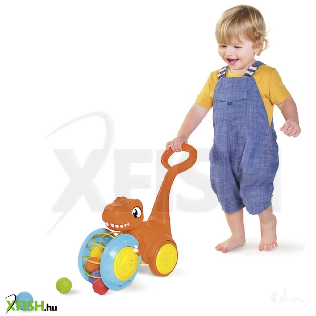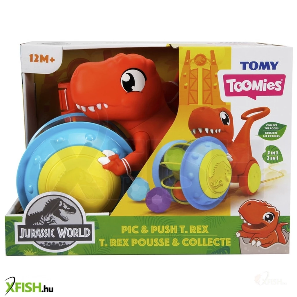 A Toomies Tologatható T-Rex játékkal kétféle módon lehet játszani. A kisgyermekbarát, könnyen fogható fogantyúval görgethető a T-Rex, így a színes köveket lehet összegyűjteni.