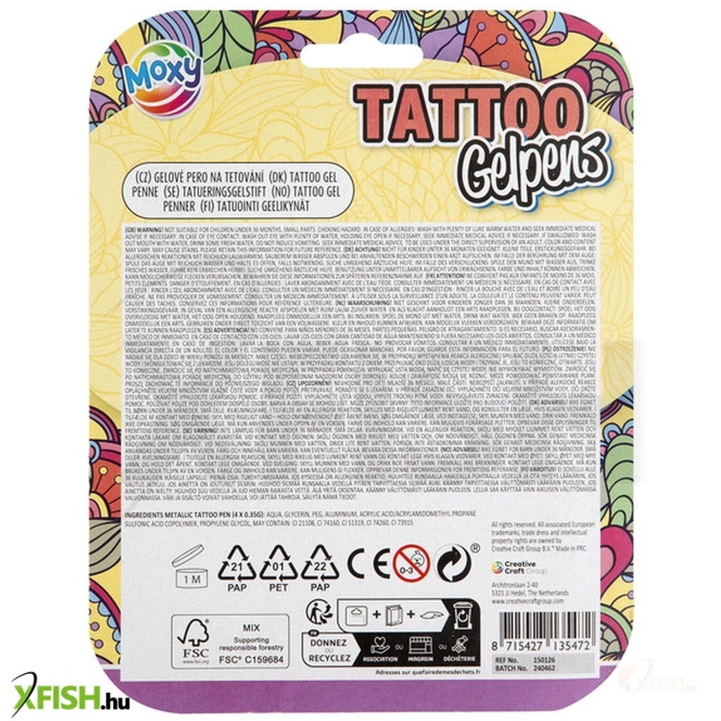 KategóriákKategóriákÉkszer, smink,illatszer Tetováló matrica, tetováló szett Grafix metál színű tetováló toll, 4 db toll + sablon
