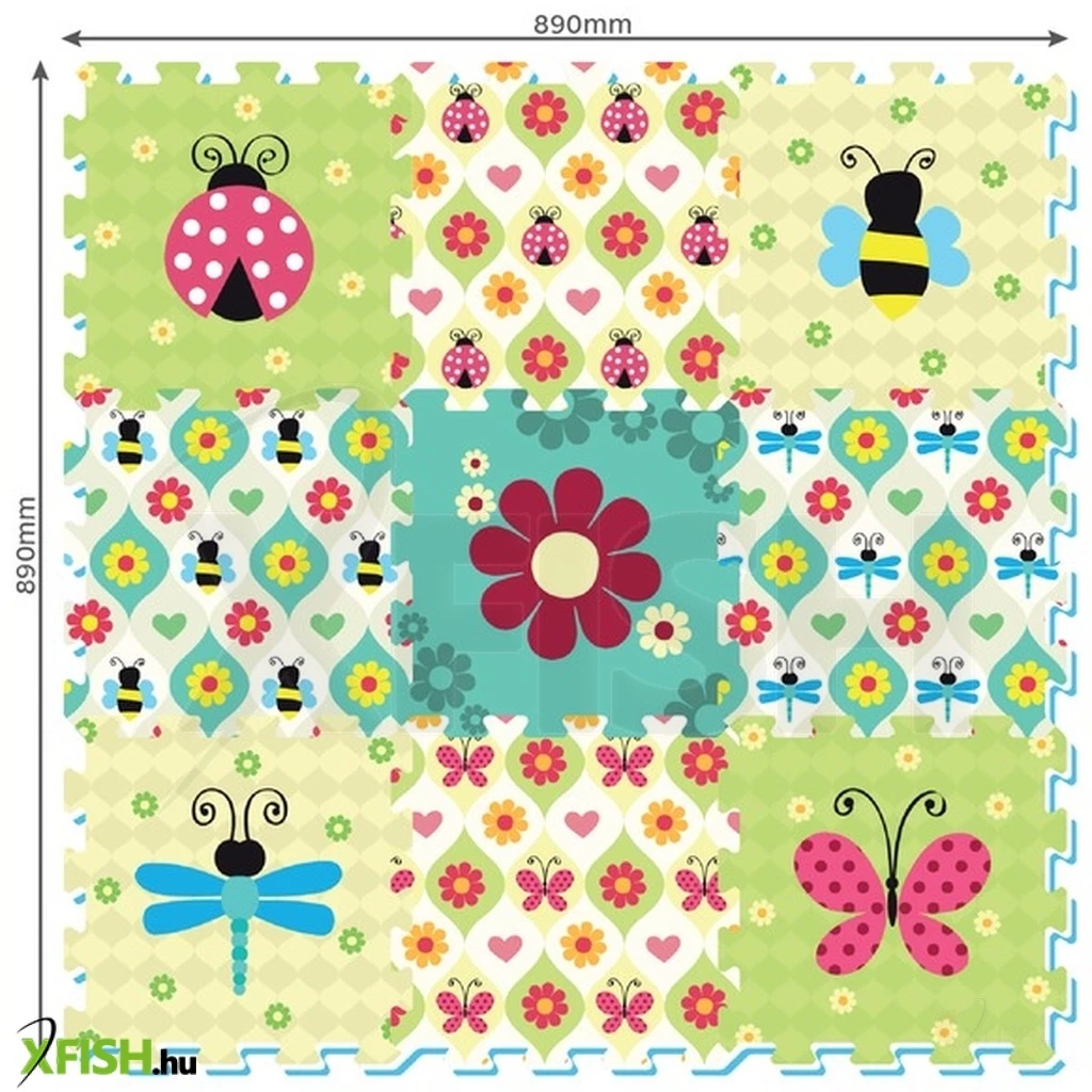 Terítsd le a puha szivacslapokat, és játssz rajtuk fekve! A Katicabogár és barátai 9 darabos szőnyeg puzzle egy nagyobb mozaikdarabokból álló habszivacs szőnyeg, amit a padlóra is le lehet teríteni. A puzzle katicabogárral, méhecskével, lepkével, vidám bogarakkal van díszítve, a habtapi puzzle megvédi a kisebb gyerekeket az eséstől, amikor a szőnyegen játszanak. A Katicabogár és barátai 9 darabos szőnyeg puzzle darabjainak méretei: 30 x 30 x 1 cm.