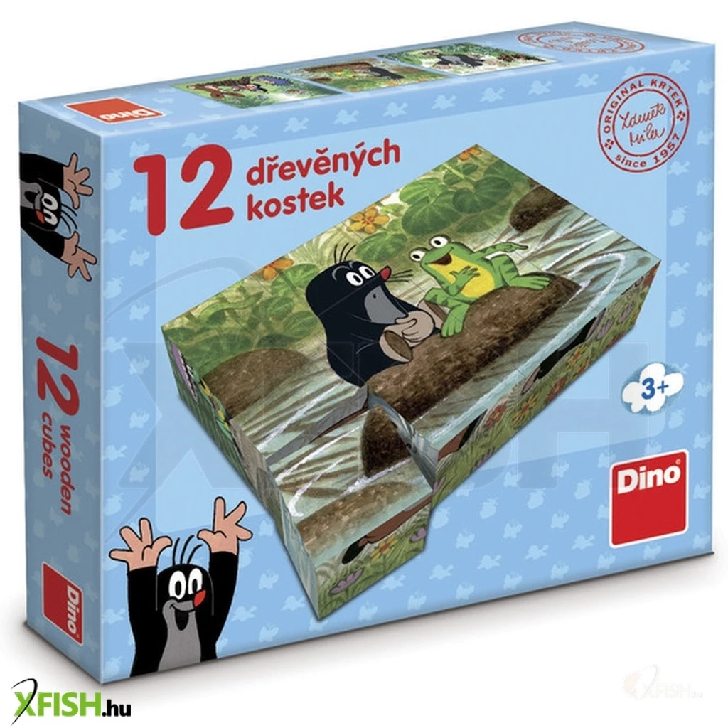 Rakj ki hat képet Kisvakondról és a madárról! A Kisvakond és a madár 12 darabos fa mesekocka dobozában minden oldalukon festett kockákat találsz, amikből hat képet tudsz kirakni, amiken Kisvakond és barátai szerepelnek. A kockák fából készültek, a gyerekek építőkockaként is tudnak játszani vele.