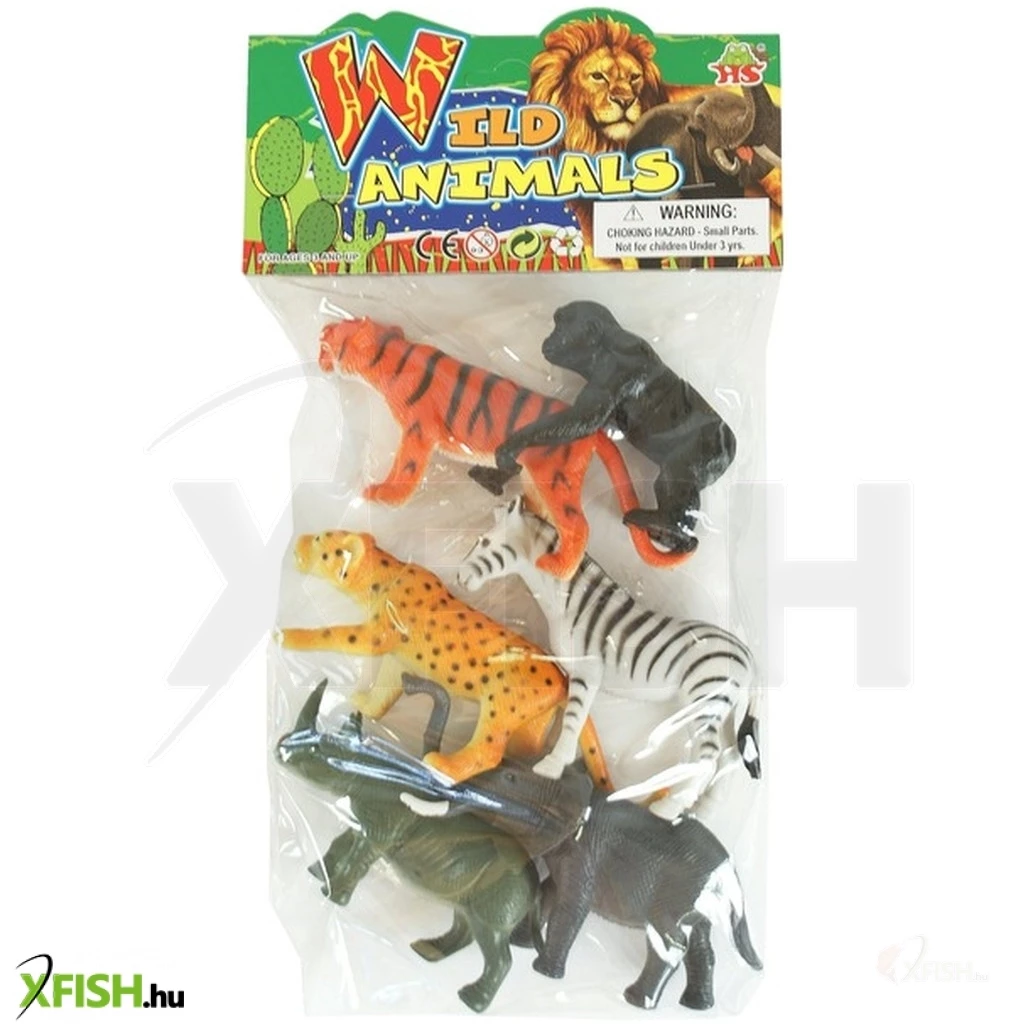 Rendezd be a saját szavannádat vadállatokkal! A Vadállat 6 darabos készlet egy leopárd, orrszarvú, zebra, tigris, oroszlán és elefánt műanyag állatfiguráját tartalmazza. Az állatok szép festéssel készültek, együtt használhatók bármilyen állatos játékokkal is. A Vadállat 6 darabos készlet állatainak mérete: 11-13 cm.