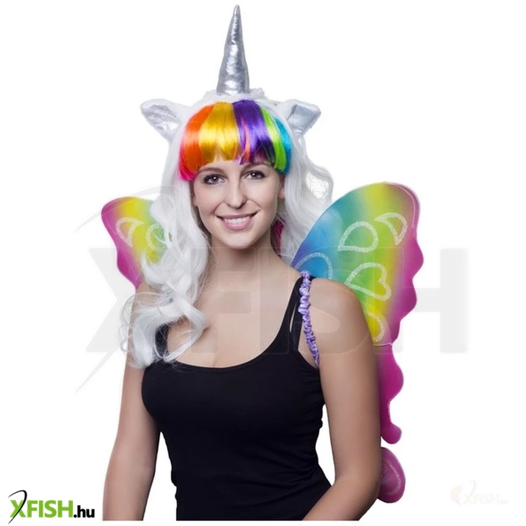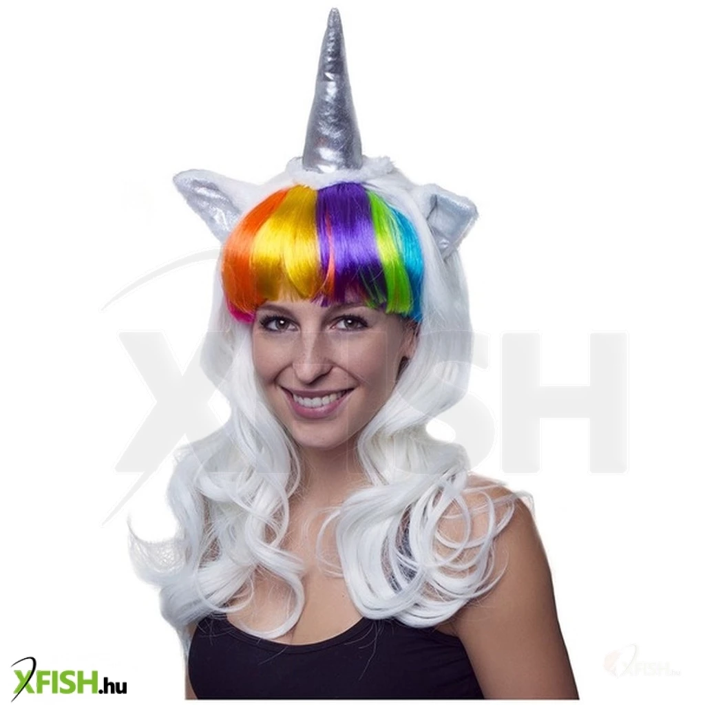 Öltözz be egyszarvúnak, és vedd fel a szivárványos fejdíszt! Az Unikornis paróka egy hosszú, hófehér és szivárványos hajjal készült egyszarvú műhaj, csillogó szarvval. A paróka átmérője állítható, akár gyerekek, vagy felnőttek is bátran felvehetik, mivel a játék univerzális méretű. Az Unikornis paróka ideális bármilyen egyszarvú jelmezhez.